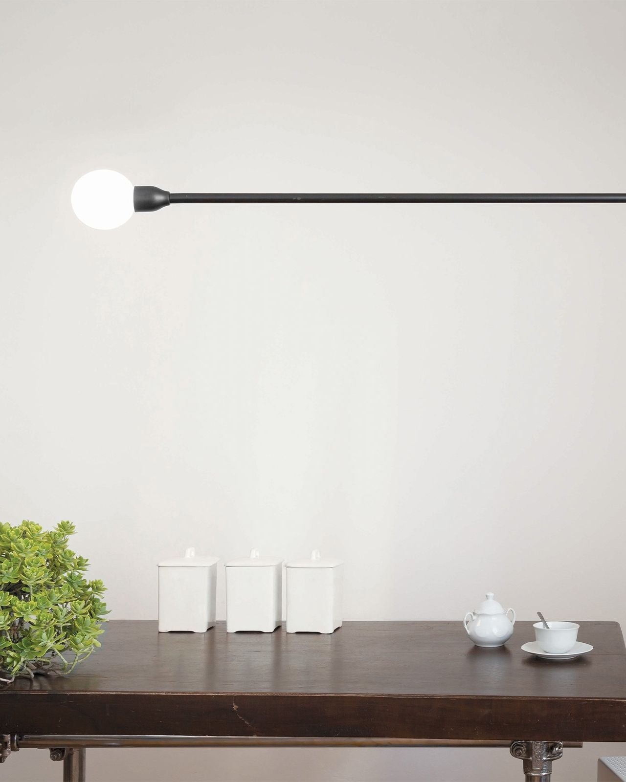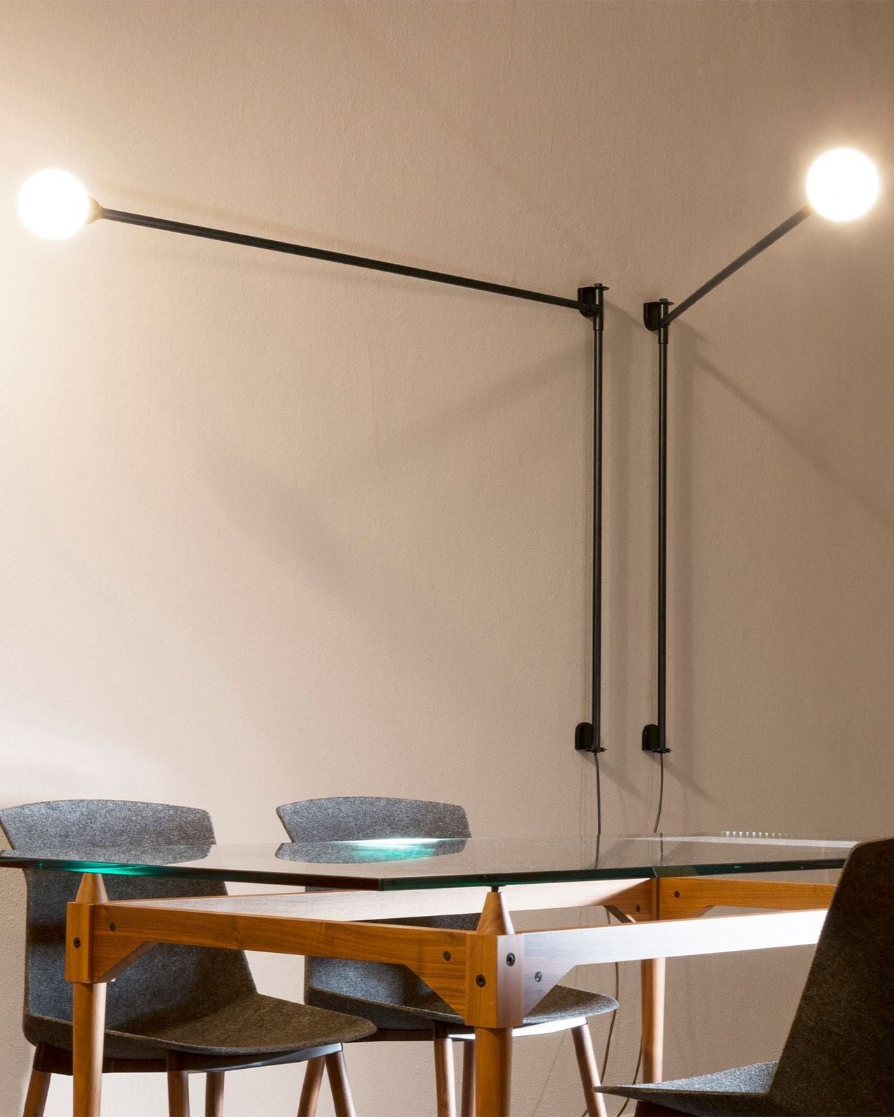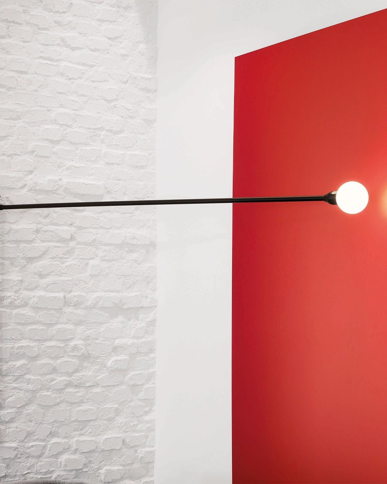 Inspired by the boom of a sailing vessel, the Rotating Contemporary Wall Lamp | Potence Pivotante by Charlotte Perriand conjures an elegant blend of engineering and poise. Its structure, formed from two slender, tubular aluminium arms, is fashioned into an inverted ‘L’ that conceals the power cable and leads to a softly glowing opaline-glass globe. The steel wall-mounting arm pivots almost 180° on its horizontal axis, offering fluid directional control while retaining a minimalist, architectural silhouette.