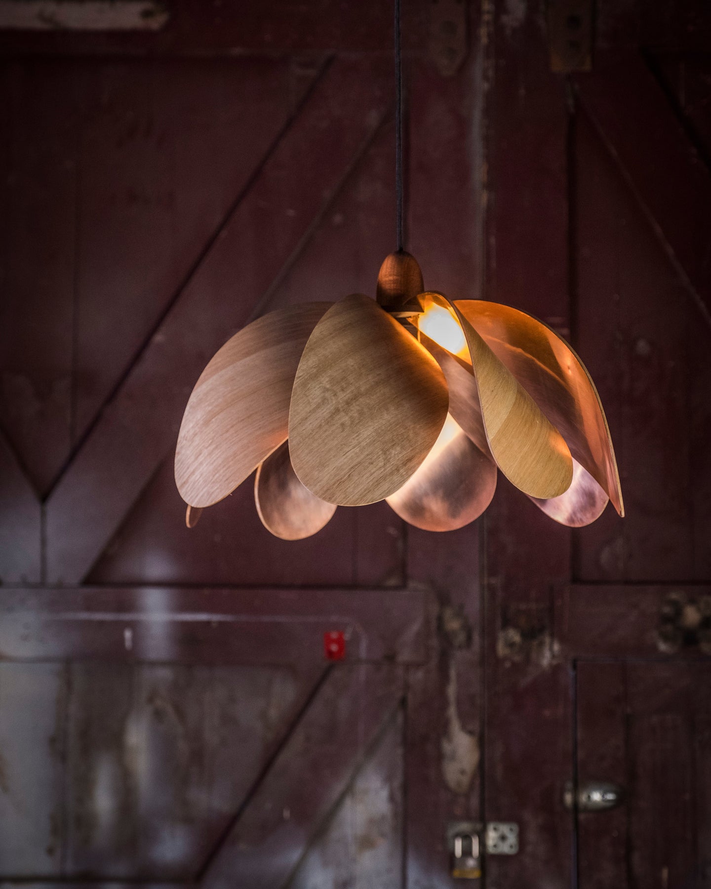 Designed by Duncan Meerding, whose vision impairment shapes his unique approach, this pendant highlights the interplay between light and form an enduring theme across his work.  The pendant light beautifully marries the natural tone of eucalypt timber with the metallic radiance of copper laminate. The internal copper surface is available in either a brushed or polished finish, allowing you to choose the look and feel that suits your space.