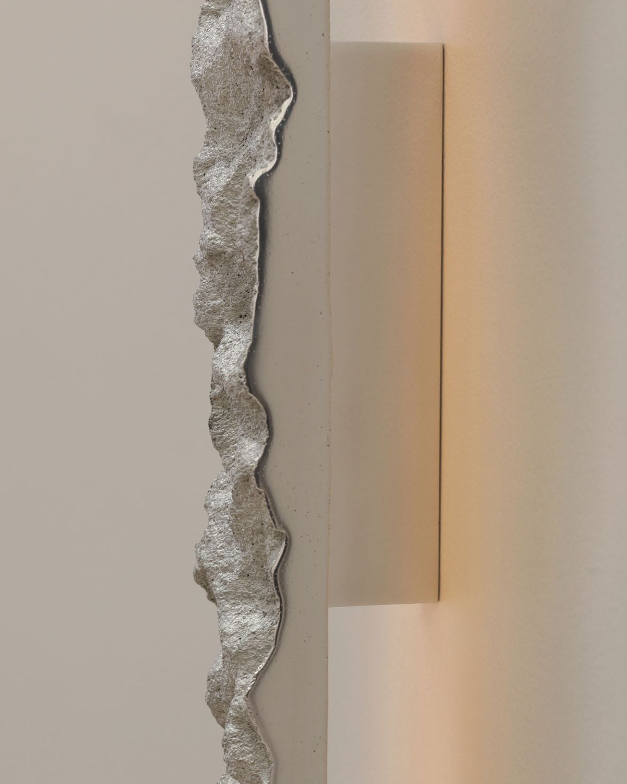 The Carst Wall Sconce is a distinctive sculptural piece crafted through innovative techniques. Handmade by artisans in Melbourne, it begins with a length of concrete that is carefully carved, then used to form a mould. From this, an aluminium casting is created, capturing the raw texture of the original concrete. The result is a striking wall light with a Brutalist style and a textured finish.