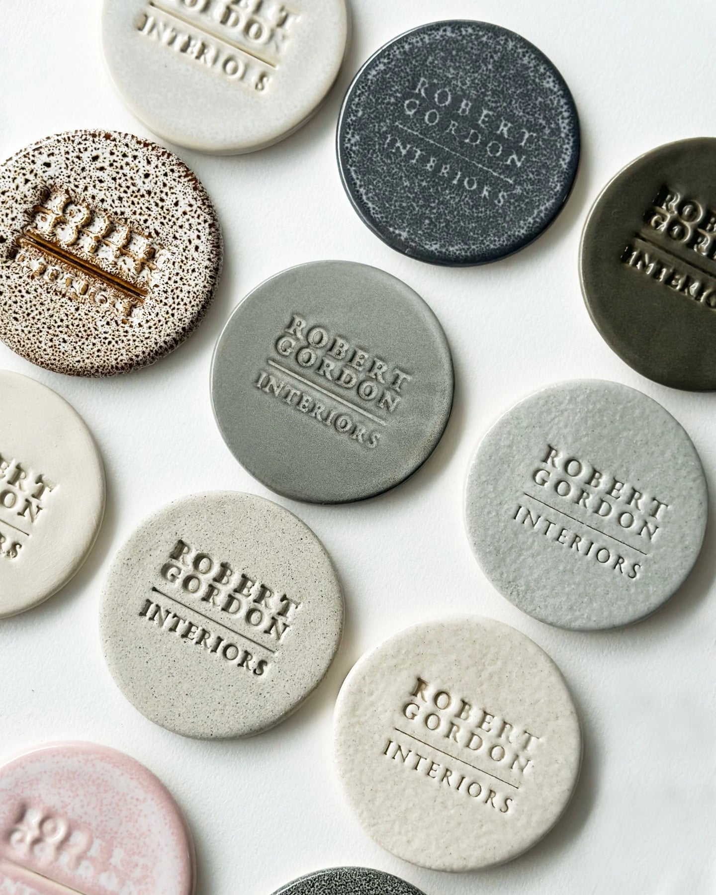 Tile colours include Stone, Poppyseed, Storm, Rose Quartz, Saltbush, Liquorice, Coast, Bone, Olive, Chai, and Milk. Obtain a set of 11 hand-cut, glazed, and high-fired ceramic colour chips created to match a selection of fittings within our range, click here to see the options and contact us for more information.