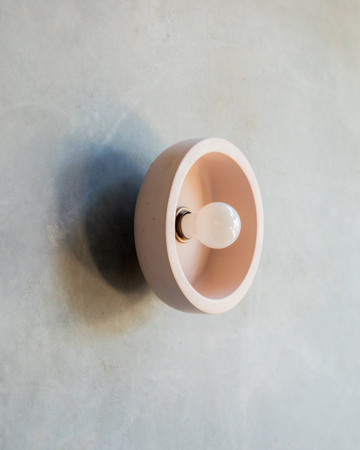 The Wide Bowl Wall Light is a simple wall fitting available in seven finishes that are created using Iron Oxide pigments. Designed and crafted locally in Ballina, this fitting is hand-poured into custom moulds using an innovative blend of concrete and glass fibres, which is then left to cure for seven days. Suitable for a variety of interior spaces, this wall light is available in both neutral and bold finishes, with three brass lamp holder choices that can seamlessly blend into the space or serve as a striking focal point.
