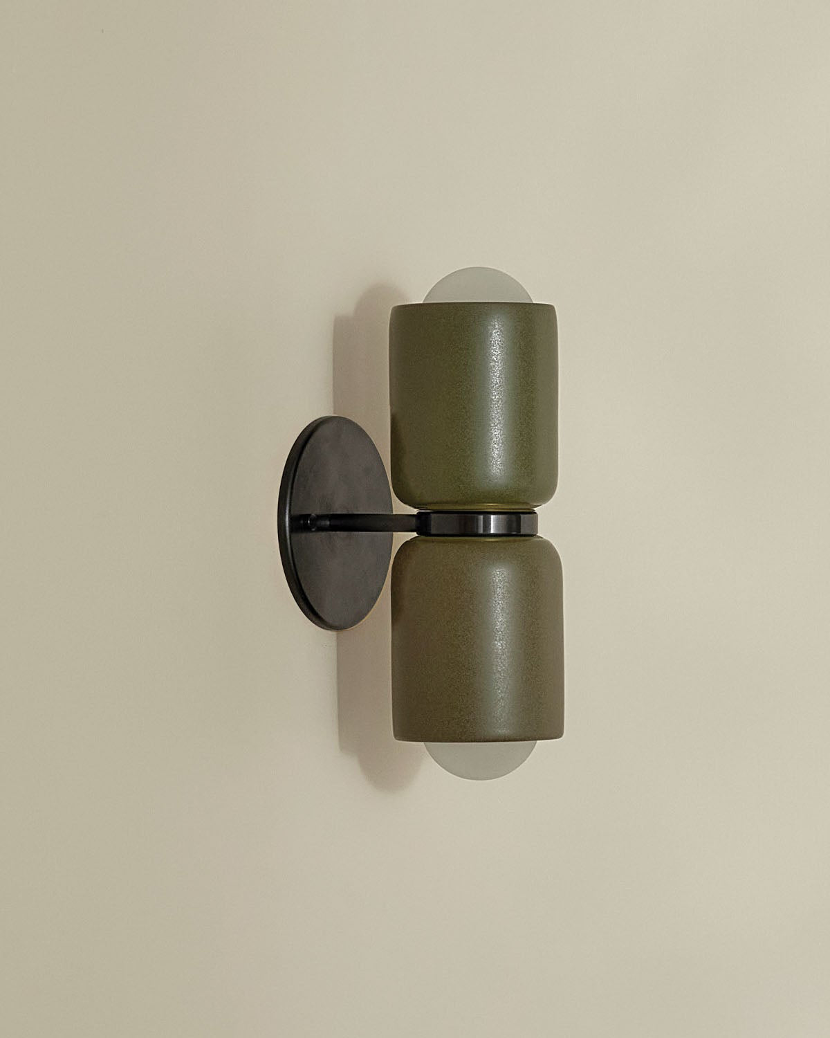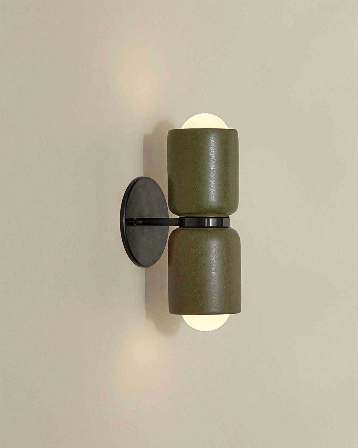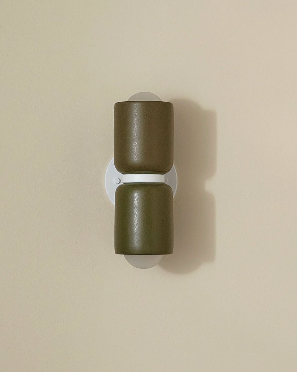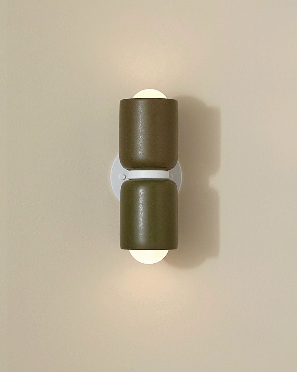Ceramic Up Down Wall Light Terra 2 Olive Side Light On White