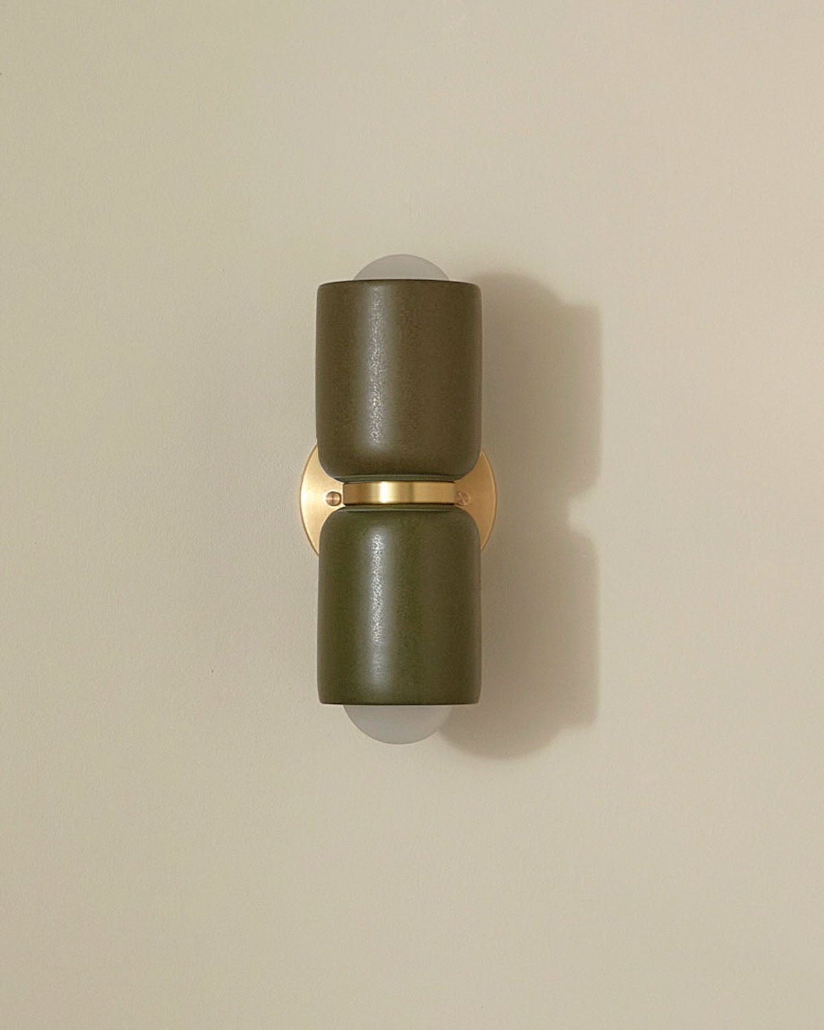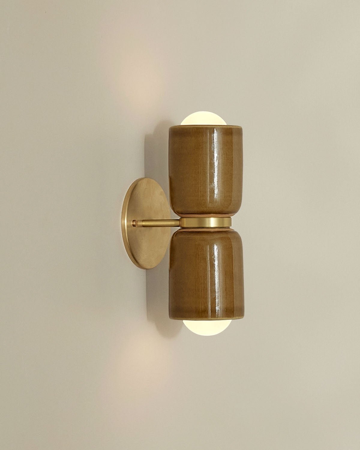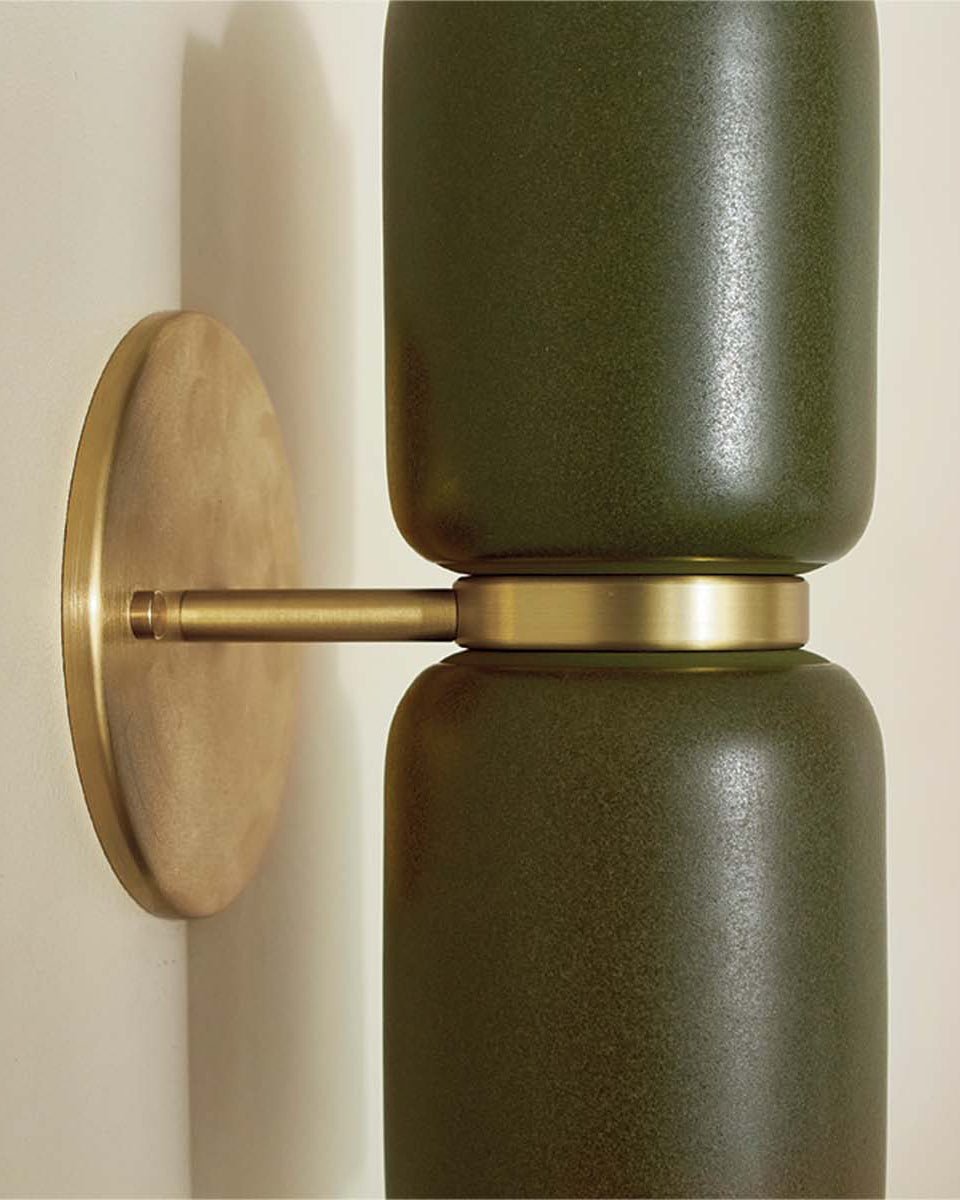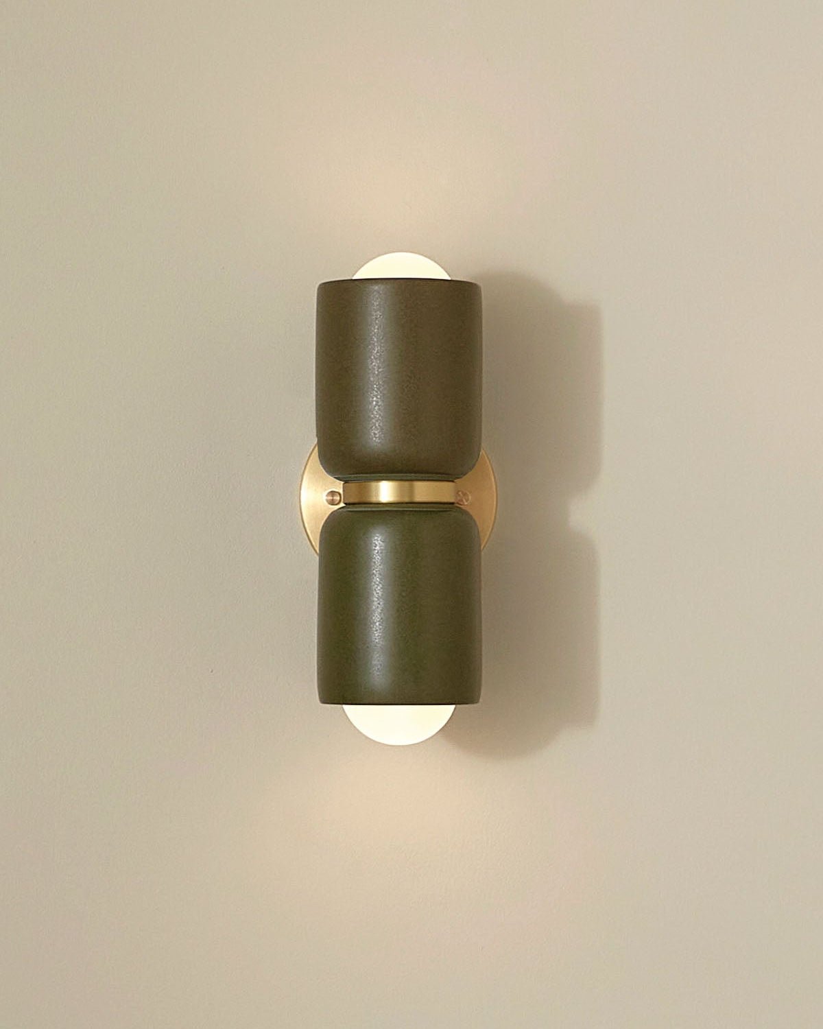 Ceramic Up Down Wall Light Terra 2 Olive Side Light On Brass