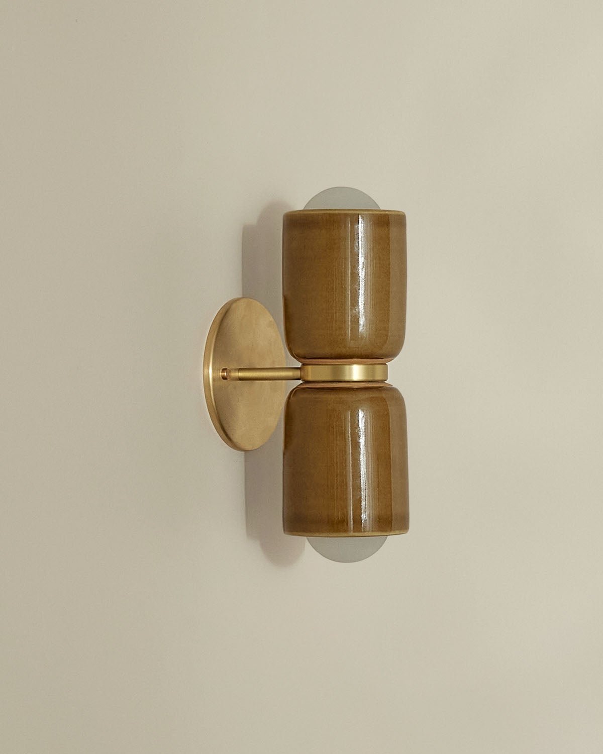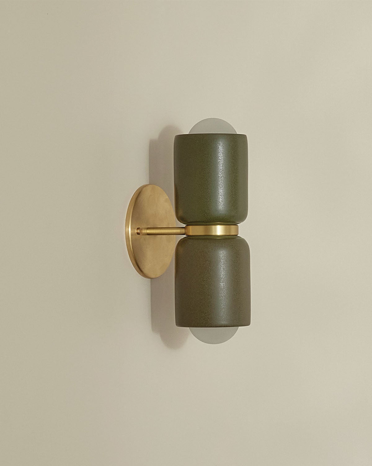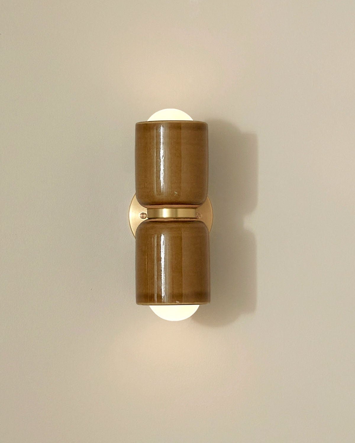 Ceramic Up Down Wall Light Terra 2 Olive Side Light On Brass
