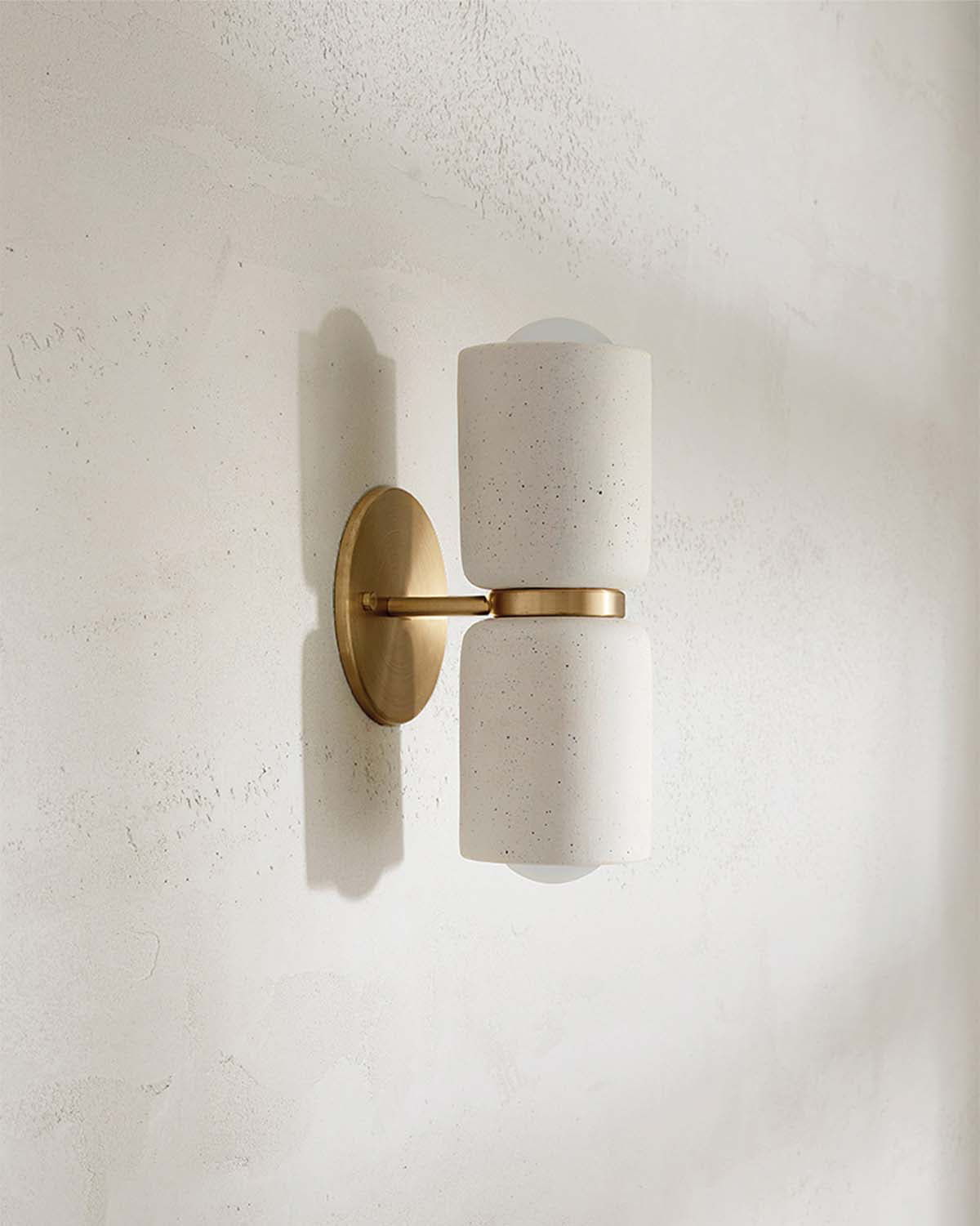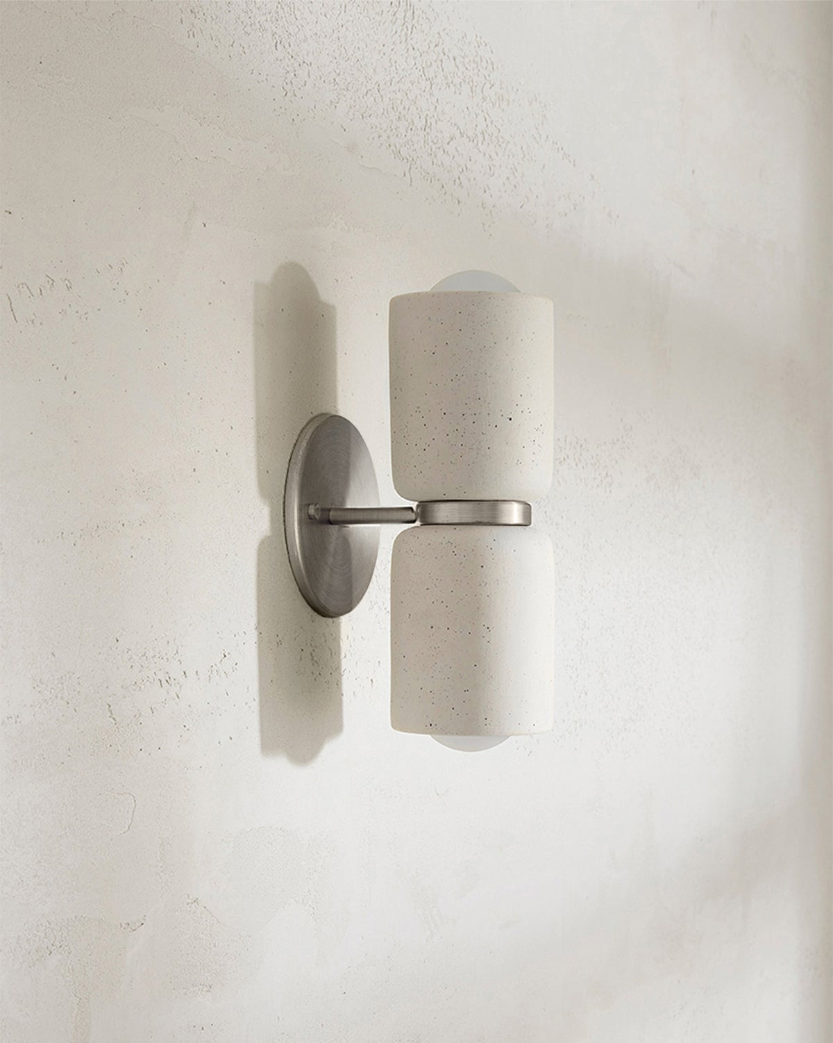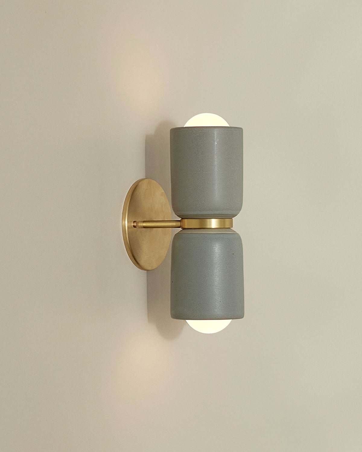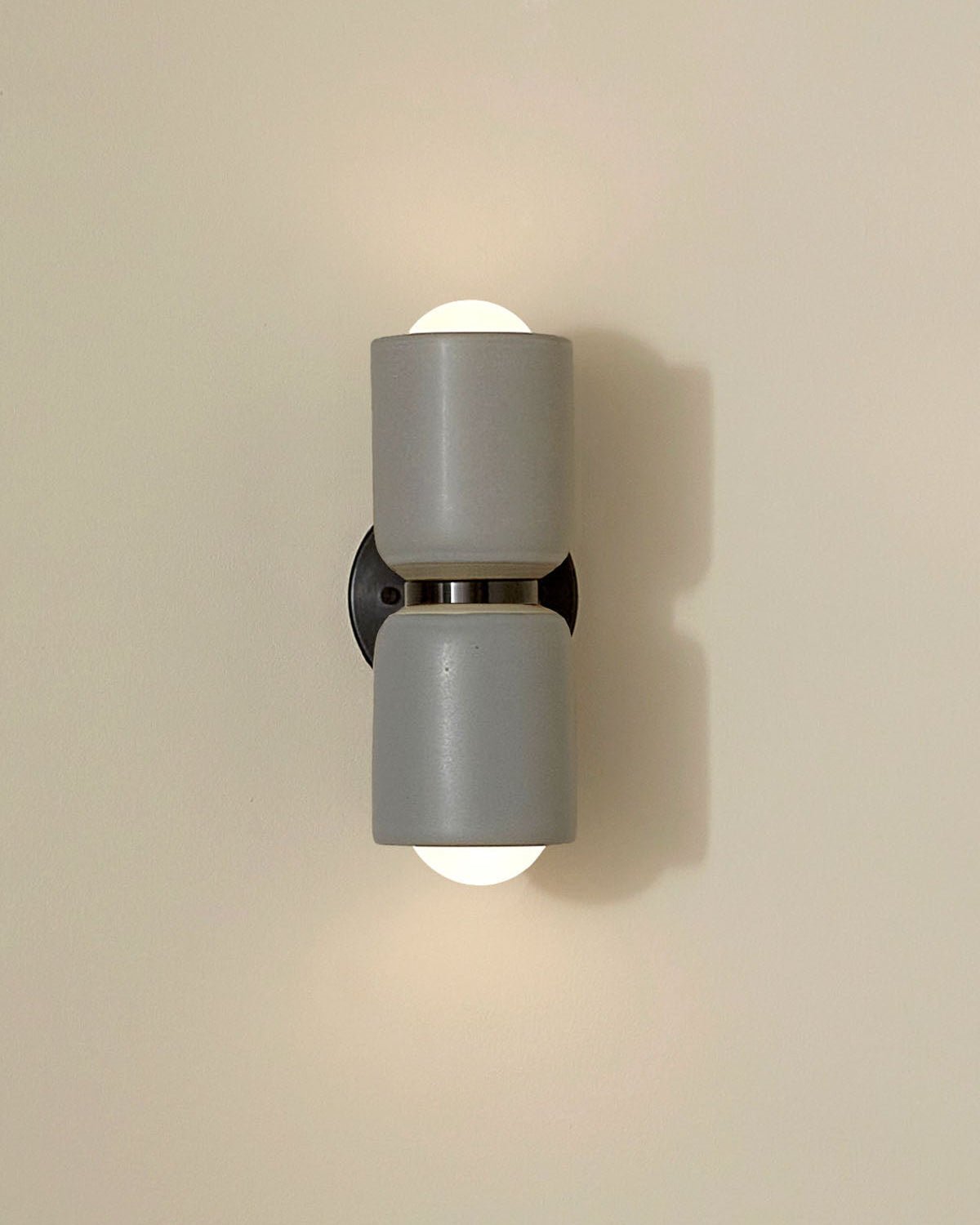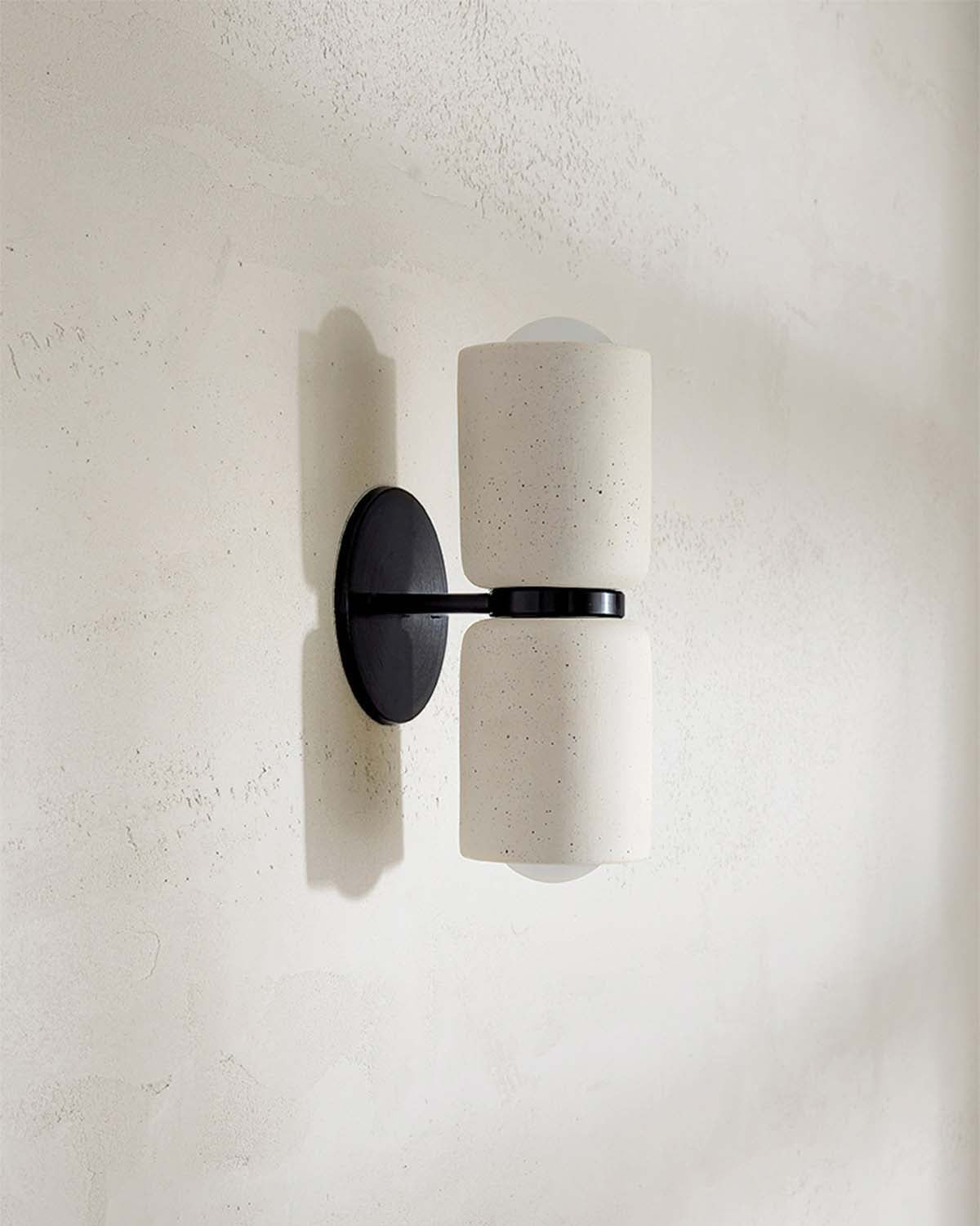 The Terra 2 Wall Light is defined by its refined simplicity and architectural presence. Crafted from ceramicl materials, each piece balances form and function through honest, tactile design. The Terra 2 emits light both upwards and downwards, creating a warm, atmospheric wash across interior walls.