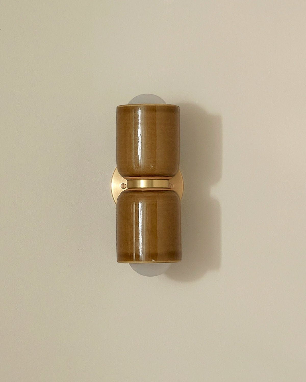 Ceramic Up Down Wall Light Terra 2 Vanilla Bean Light Off Brass