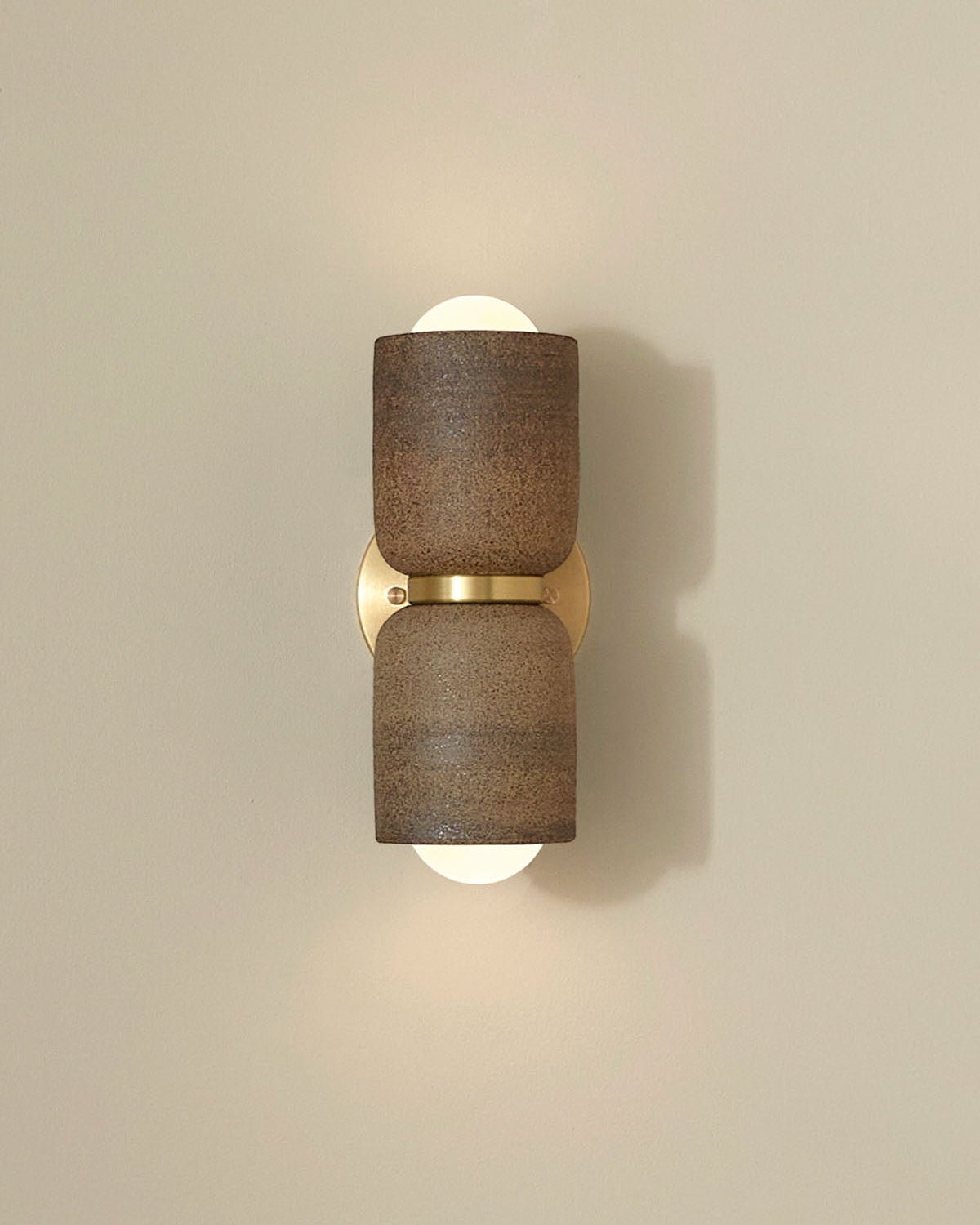 Ceramic Up Down Wall Light Terra 2 Raw Clay Light On Brass