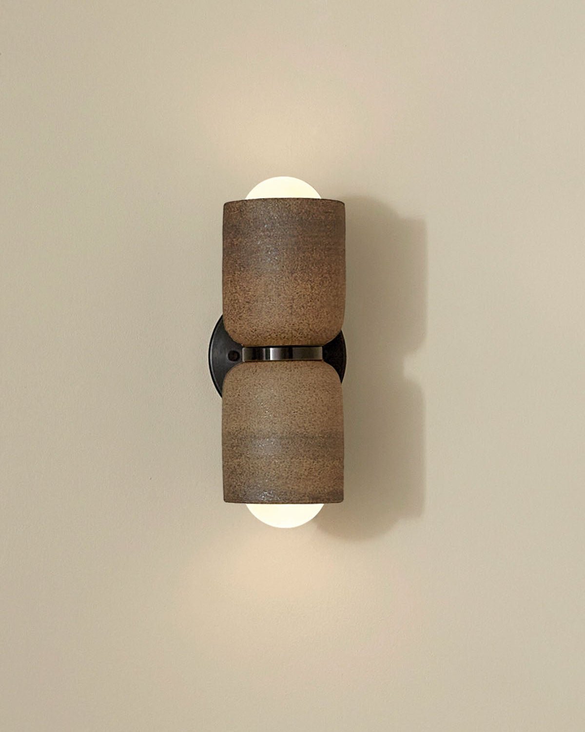 Ceramic Up Down Wall Light Terra 2 Raw Clay Light On Black