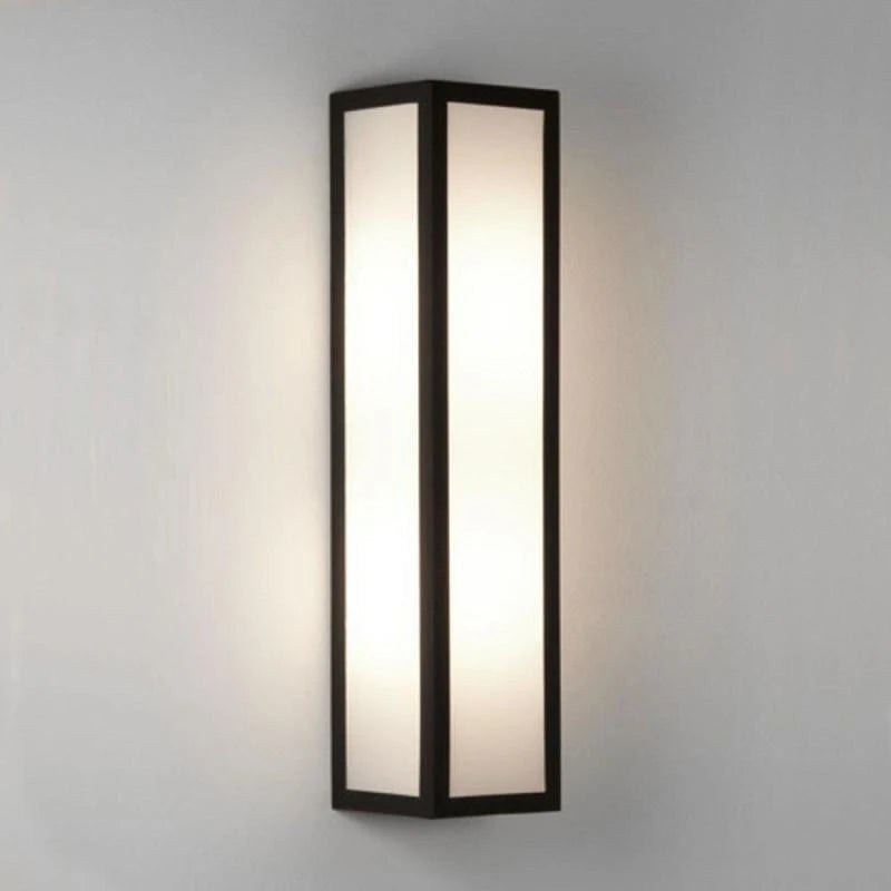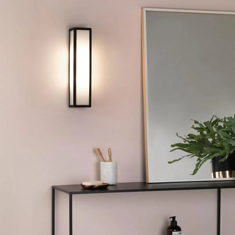 This clean line, elongated box light comes with frosted glass to soften the dispersion of the light. The chic black finish and frosted glass reflect a subtle Japanese aesthetic but would suit a variety of settings. The IP rating of 44 means it will endure outdoor conditions and stay looking as beautiful and polished as it does now.