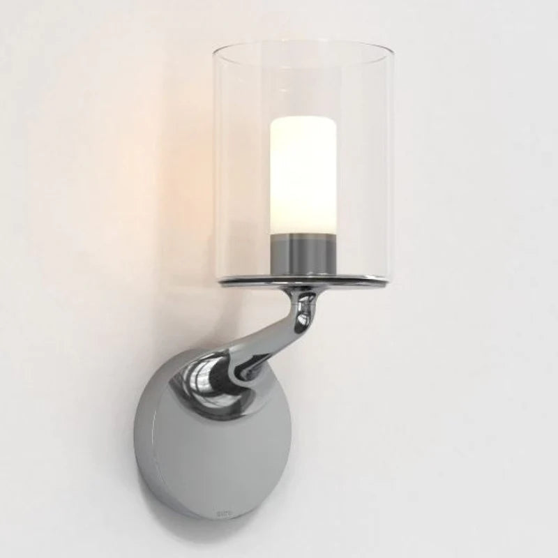 Comprised of a zinc body finished in matte black or polished chrome and a clear glass shade this sleek design is suited for mounting as a pair. This surrealist design will enhance contemporary and traditional styled interiors and with an IP44 rating, it is perfect for bathroom applications. To be paired with a G9 globe (not included).