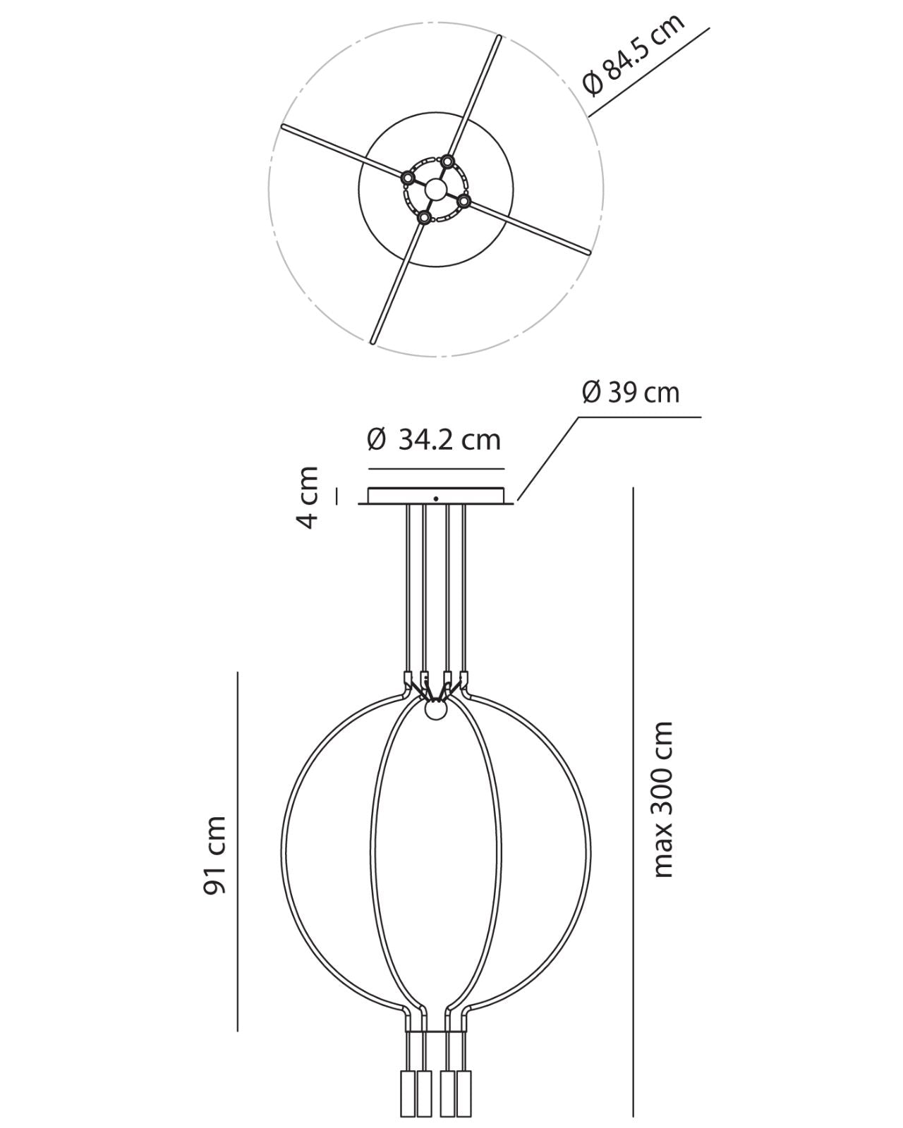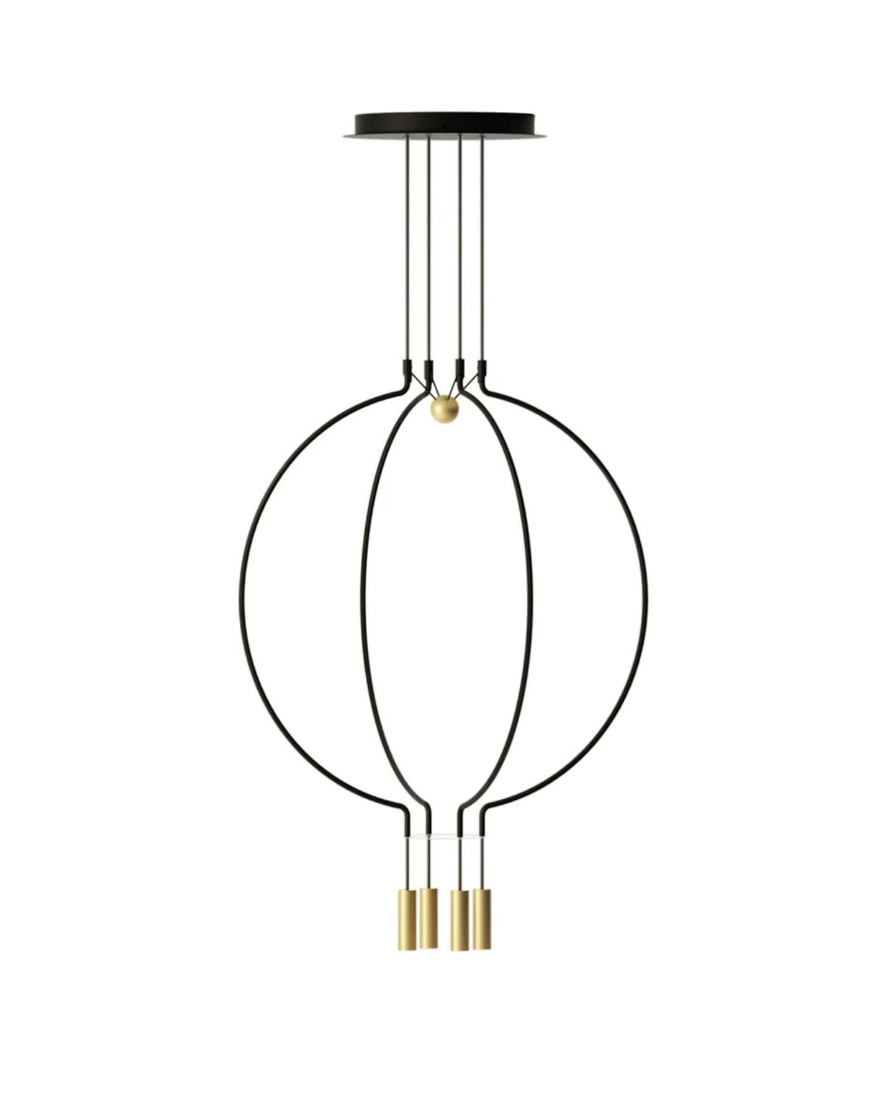 A uniquely beautiful statement piece to showcase. This double metallic structure composes of two contrasting slender curves suspended on a metallic rod, creating the form of a circle. Evoking a sense of modern playfulness in an elegant and sleek form. Crafted in Italy, this pendant is available in custom configurations, available on request.