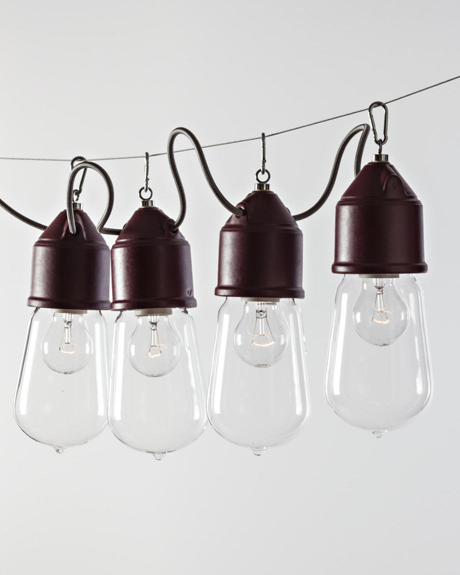 The Italian Industrial Single Pendant Light is inspired by the farming tradition of barn house evening feasts, whereby the light was produced by oil lamps on a cable. Our design allows to create a very flexible system that can be used indoors or out. Enjoy using the different coloured canopies to create the atmosphere you desire. Designed to perfection in Italy. This pendant light can be customised into a festoon light across your space (as pictured in the second and third image). Please get in touch with us if you would like to create a custom order.