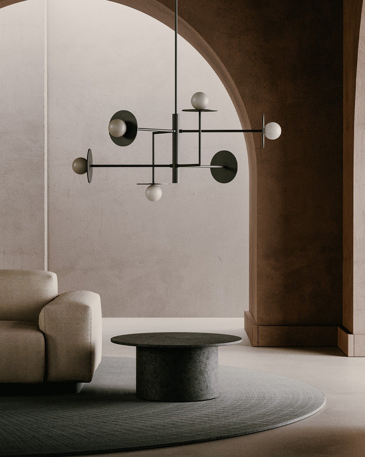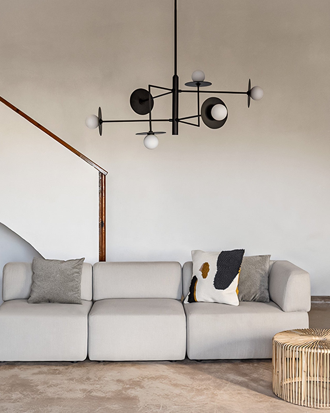 Featuring a constellation of suspended geometric forms, orbs, and discs, the Minimalist Orb Disc Chandelier is a striking balance of metal and glass. Its refined composition and sculptural presence create an impressive statement piece for modern interiors. Designed with precision and minimalism in mind, this chandelier is ideal for both residential and commercial settings from contemporary living rooms and dining areas to grand foyers and boutique spaces.