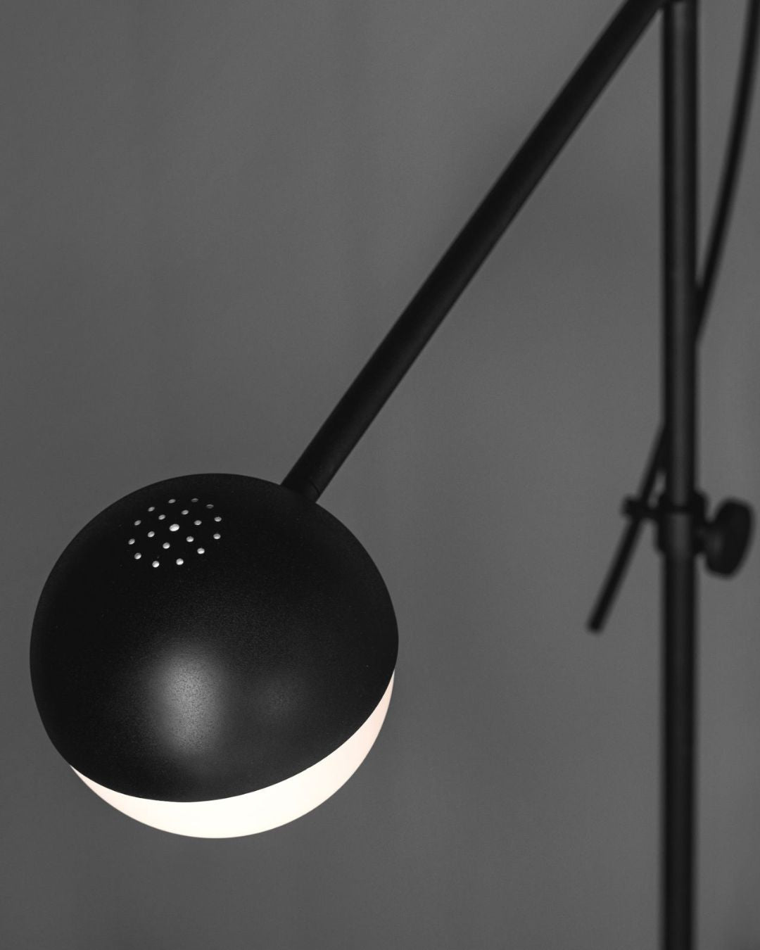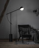 With its sleek matte black design and modern functionality, this adjustable lamp is featured with a pivoting steel arm which can be moved upwards or downwards to provide the desired light effect. Distinguished for its Geometric form and Architectural lines this floor lamp is noted for enhancing modern interiors Providing both diffused and directional light this floor lamp is a showstopper in living areas and office interiors.