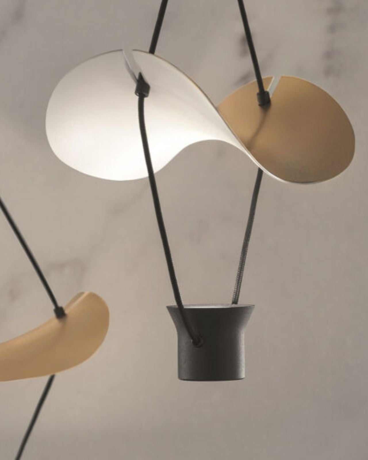These playful pendants interpret the beauty of light in lightness. A creative design with beautiful aesthetics in an array of tonal colours. Embossed white, embossed black, mid blue and pumpkin. This Italian design brings a modern artistic look to any room.