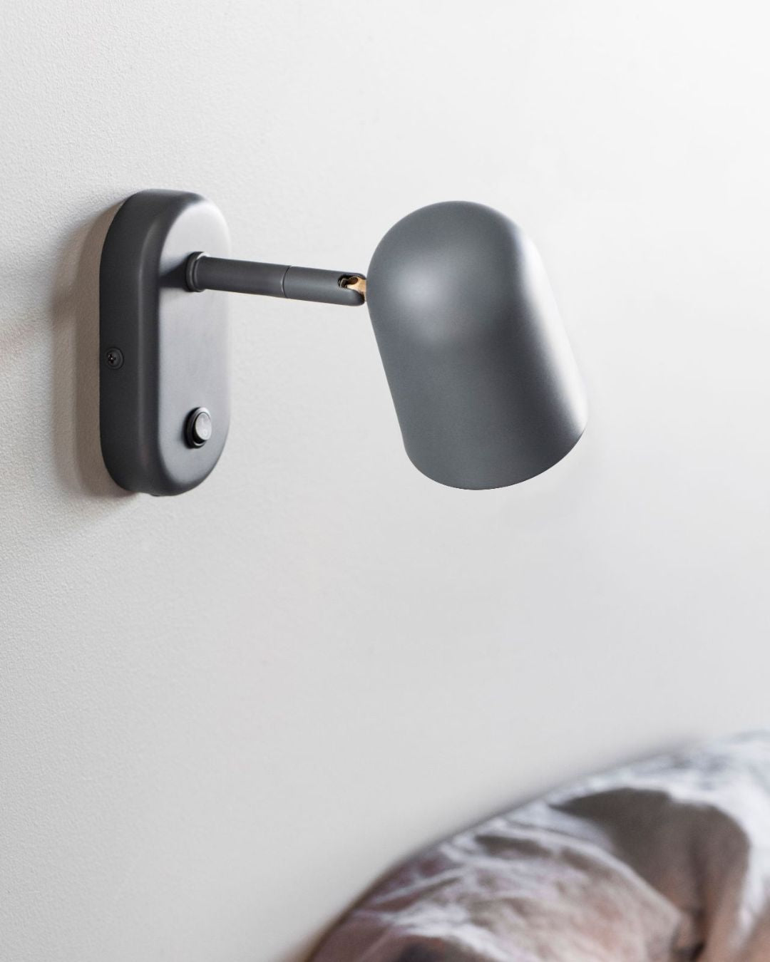 Dark gray wall-mounted lamp on a light gray wall | Lighting Collective