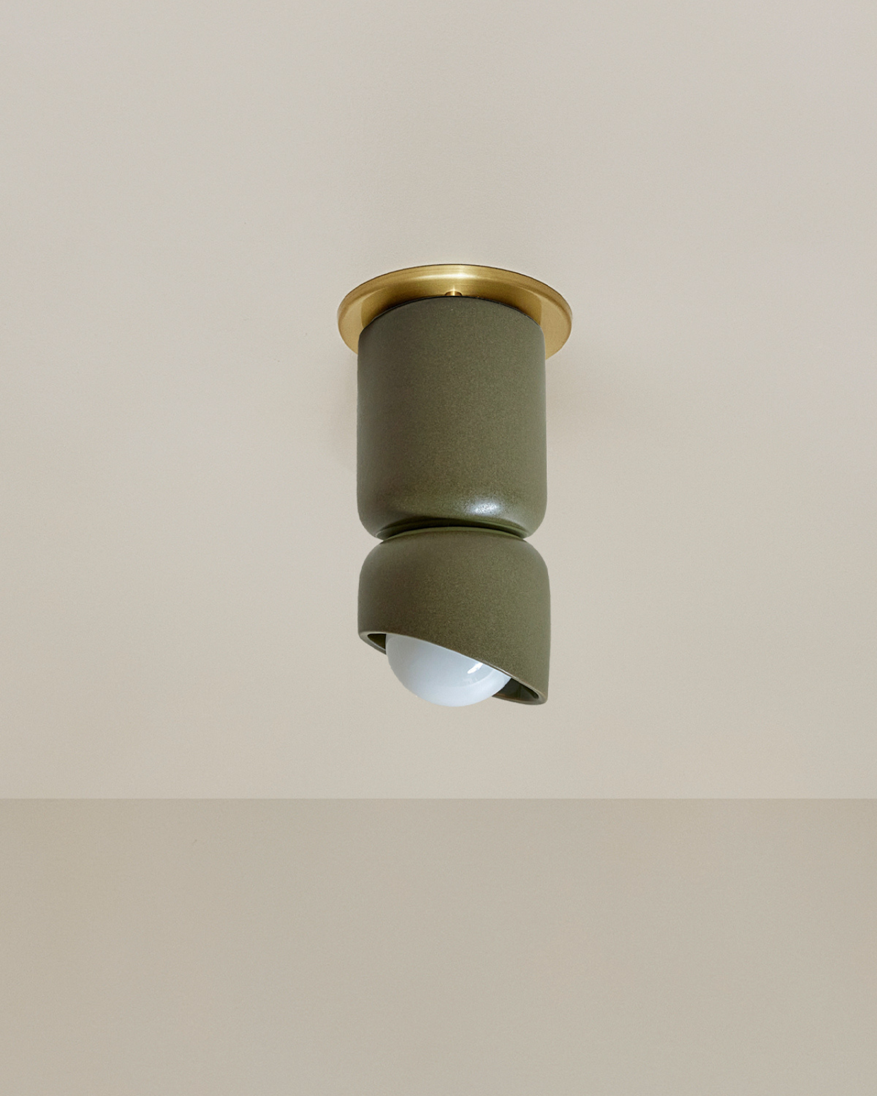 Ceramic Cylindrical Ceiling Light Terra 1.5 Olive Opal Brass Base