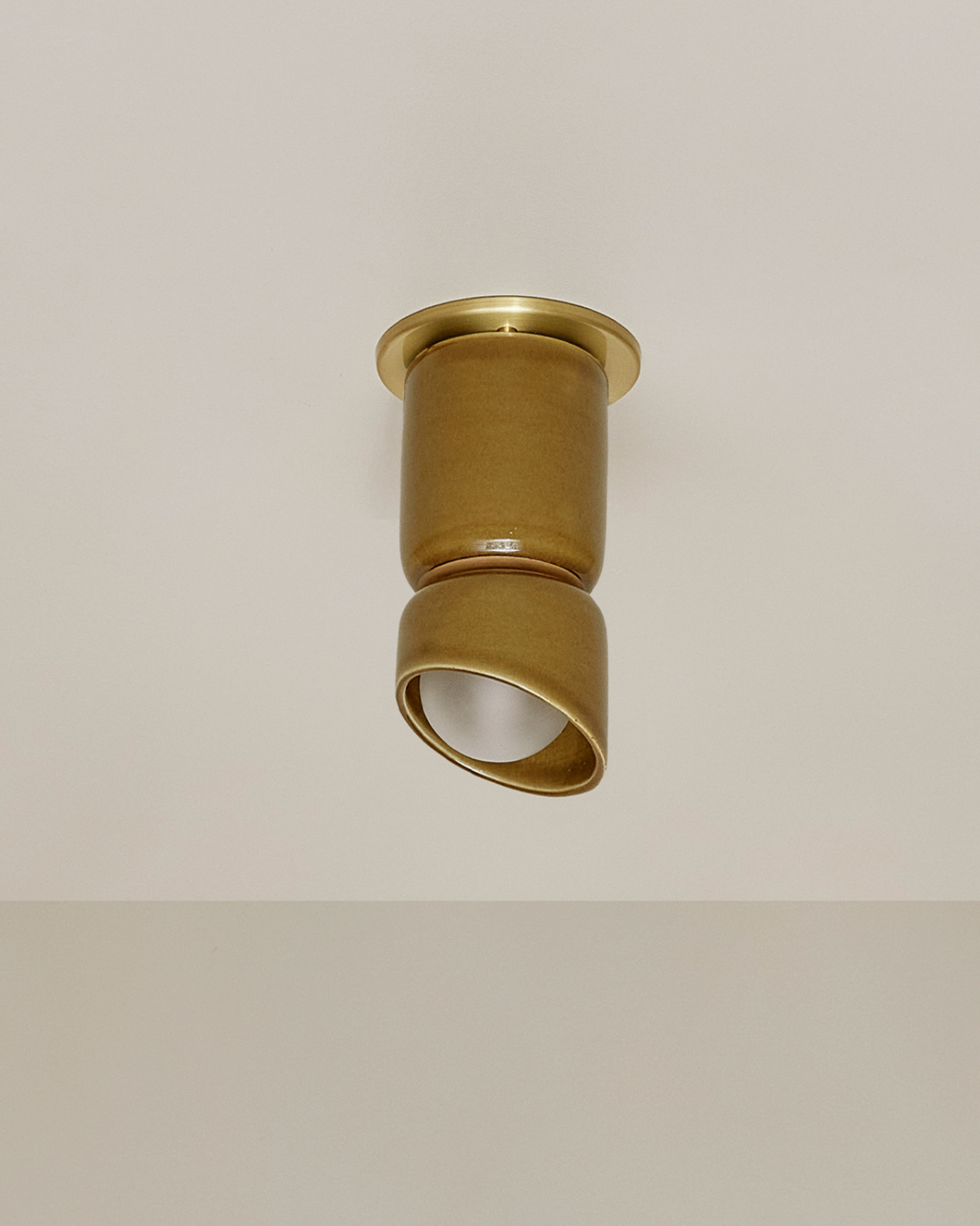 Ceramic Cylindrical Ceiling Light Terra 1.5 Lead Opal Brass Base