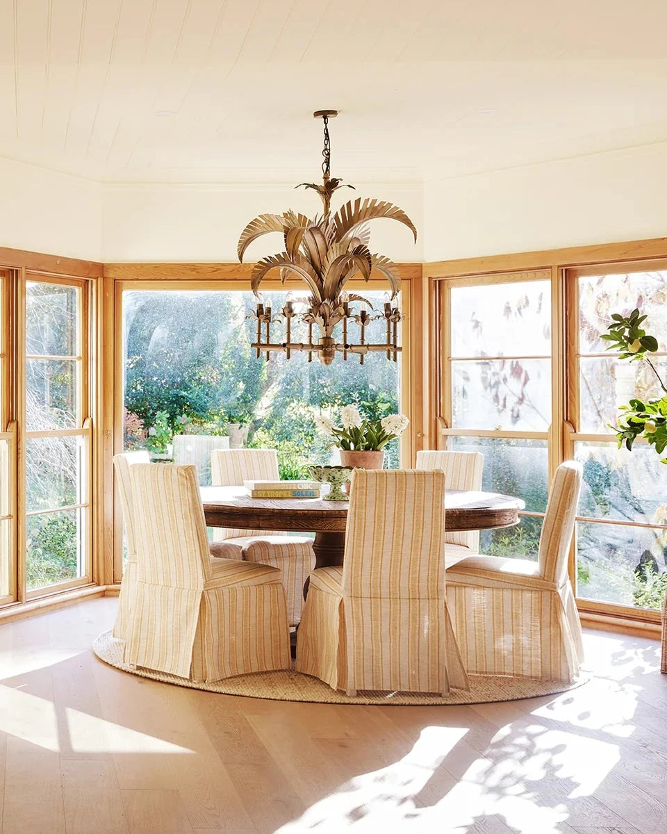 This eclectic chandelier draws inspiration from palm trees and bamboo for a stunning coastal-luxe statement.