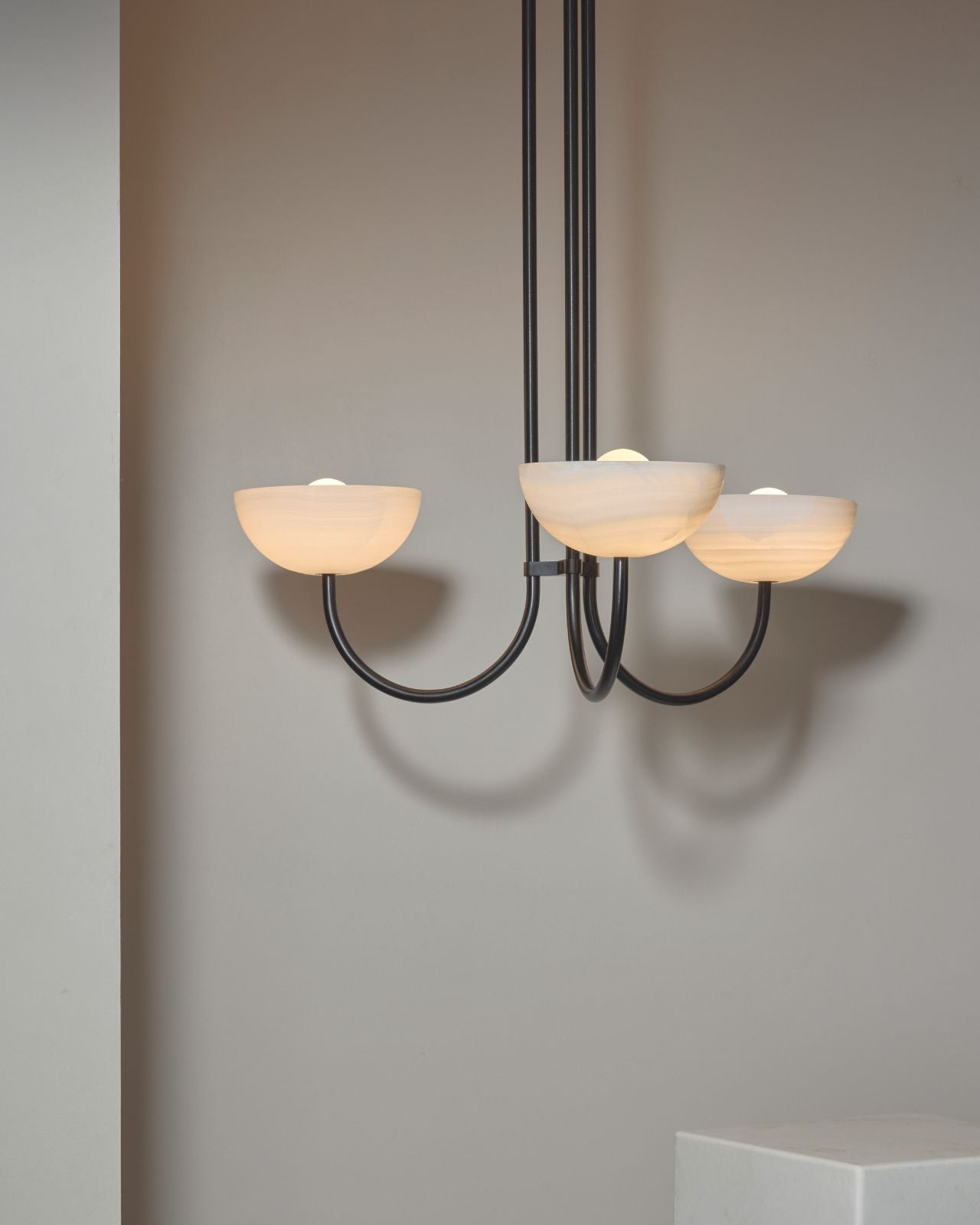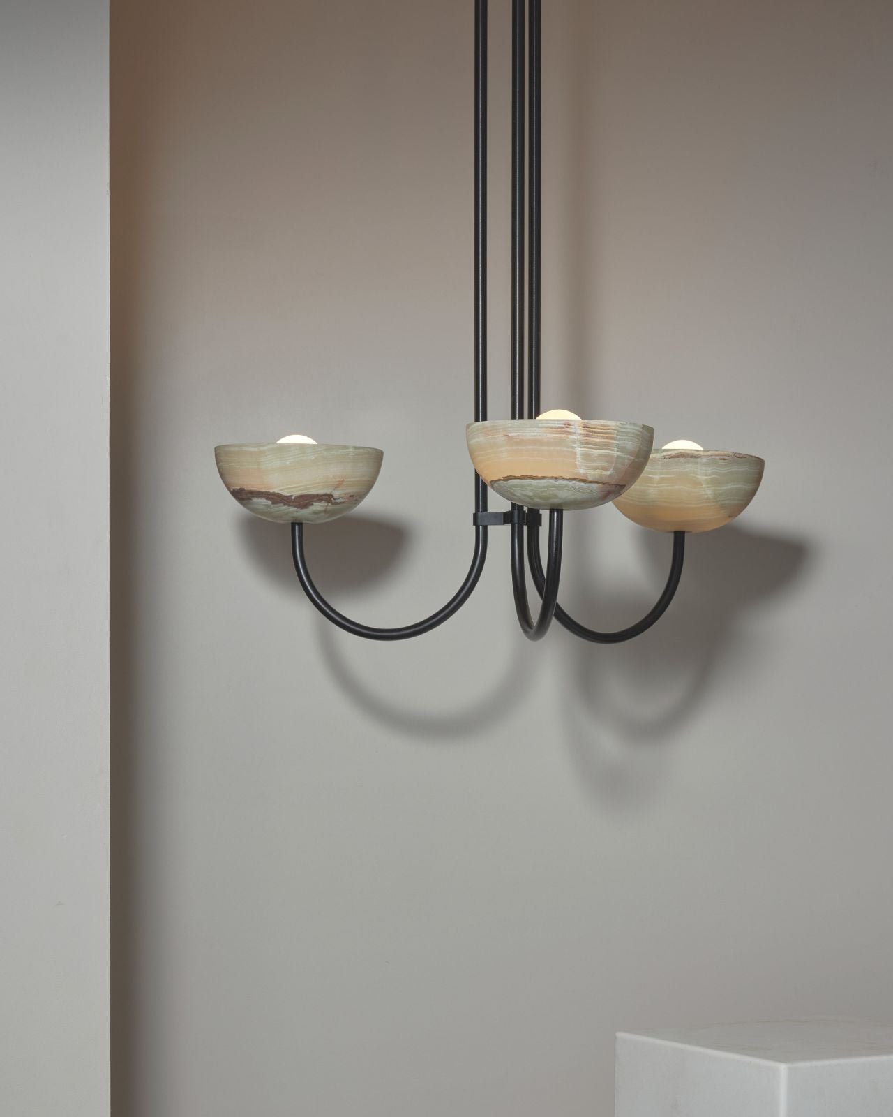 Onyx Stone Triple Dome Pendant | Aurelia - White Onyx / Small / Brushed Black