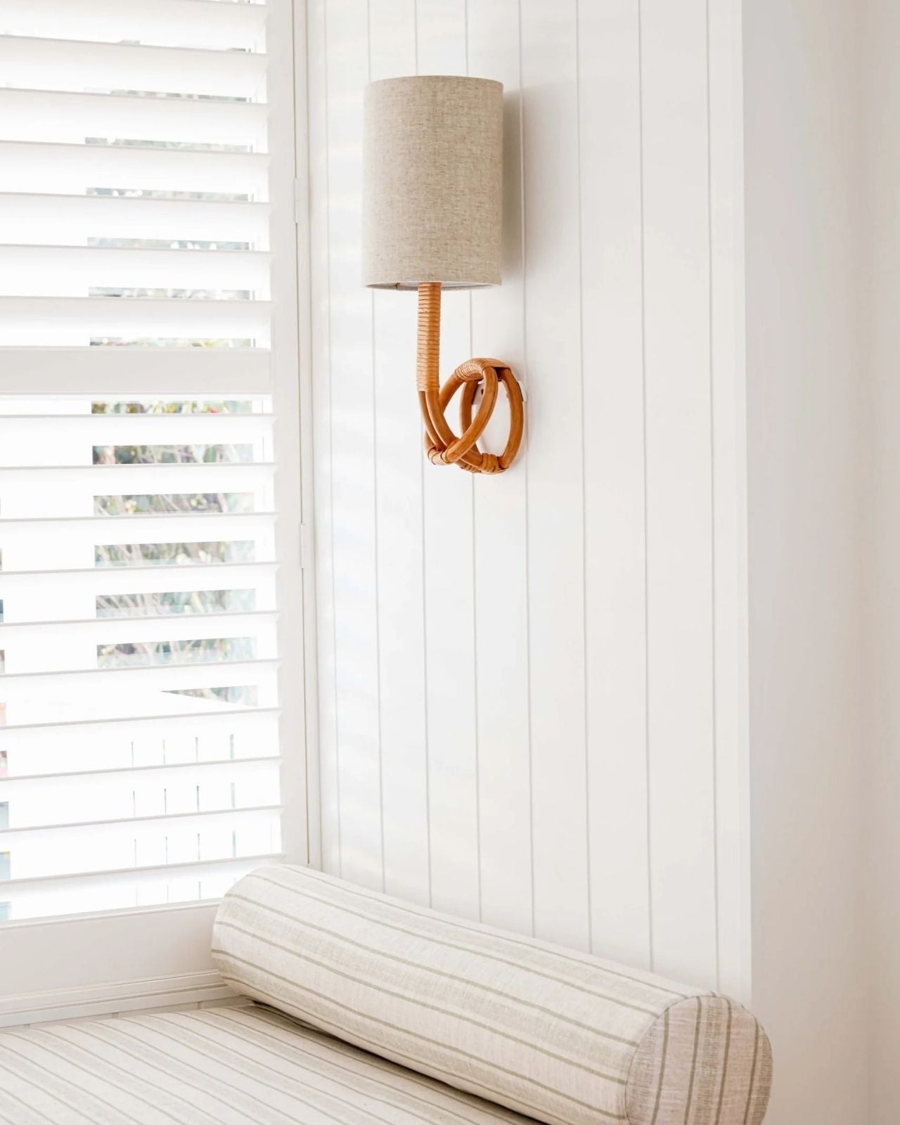 A beautiful cane wall sconce inspired by coastal living. Available in both natural and whitewash with a complimentary linen shade. The imagery attached shows a representation of size and styling. This wall fitting is for interior installation only.