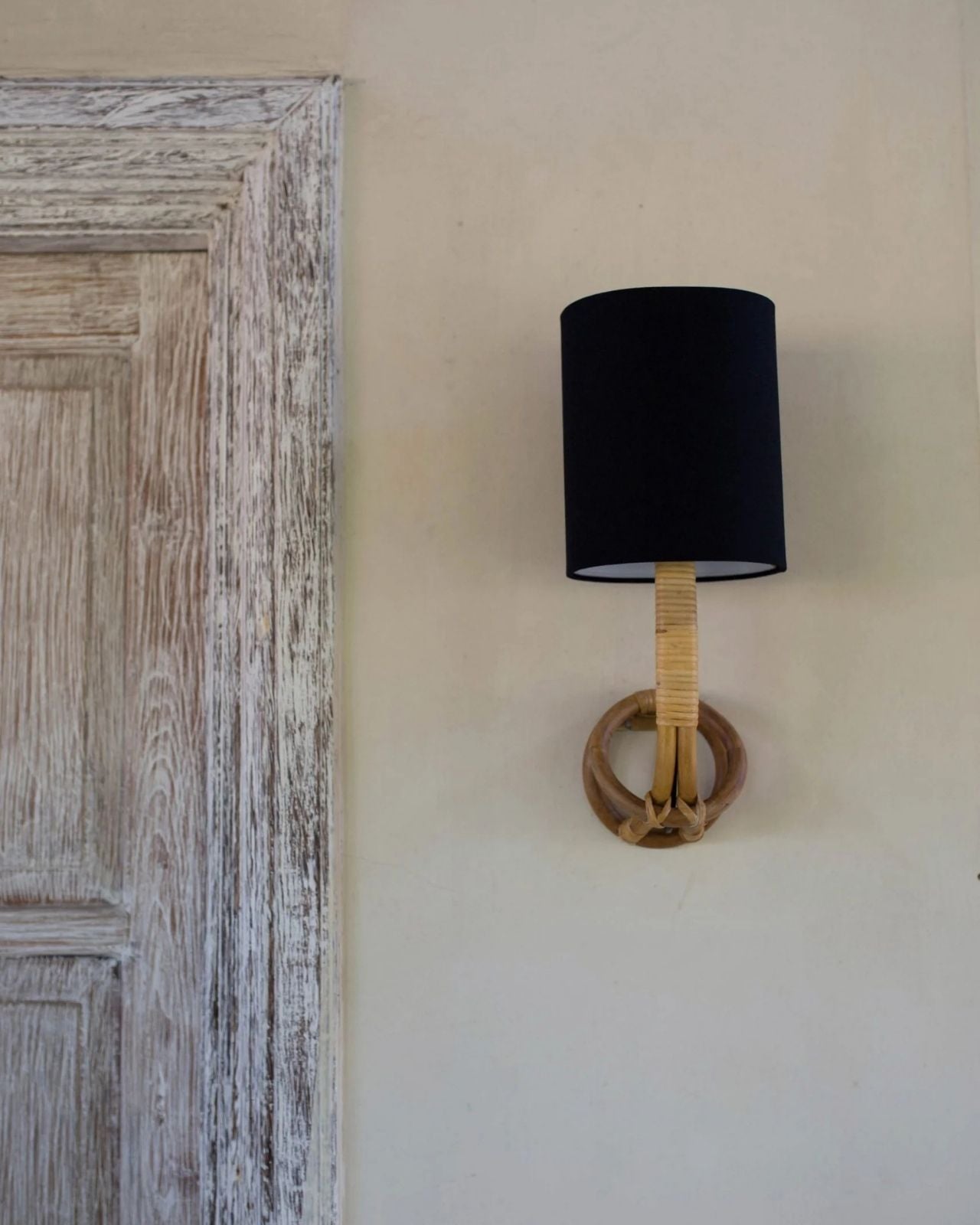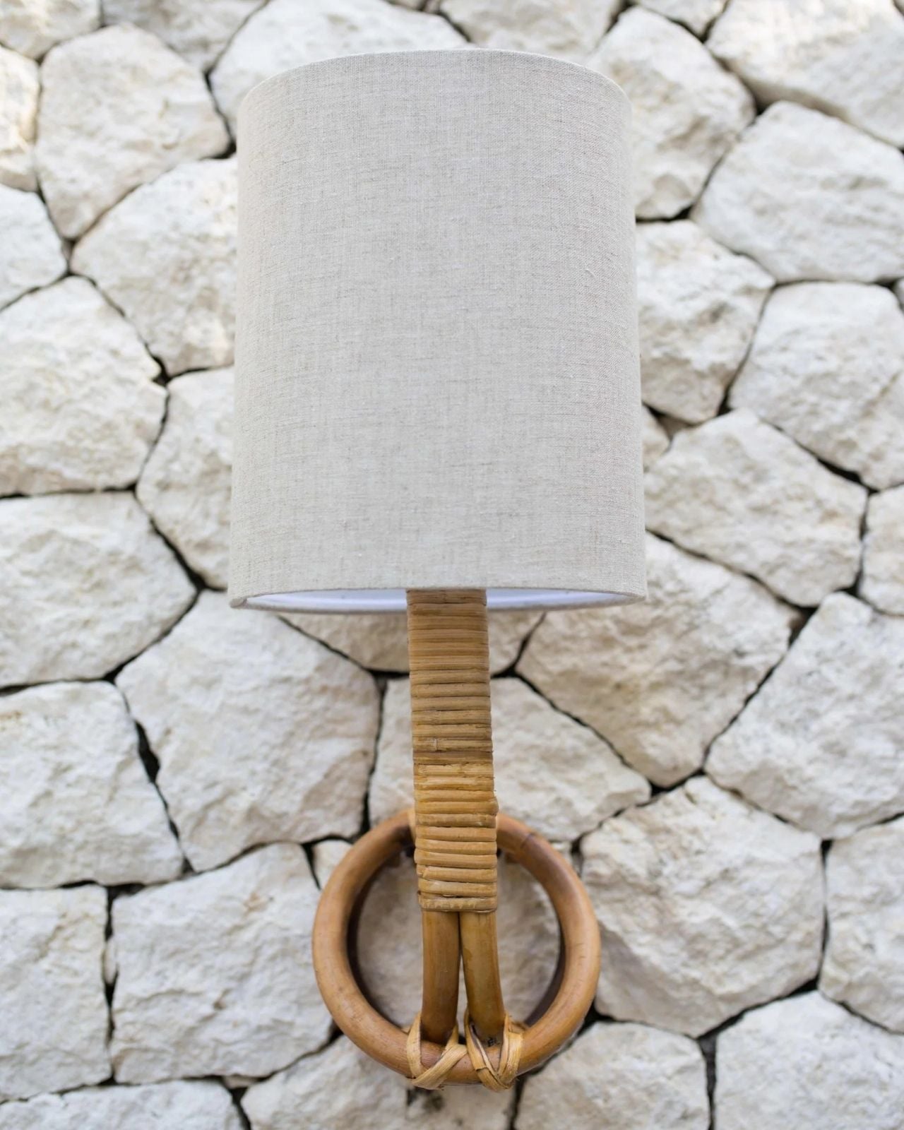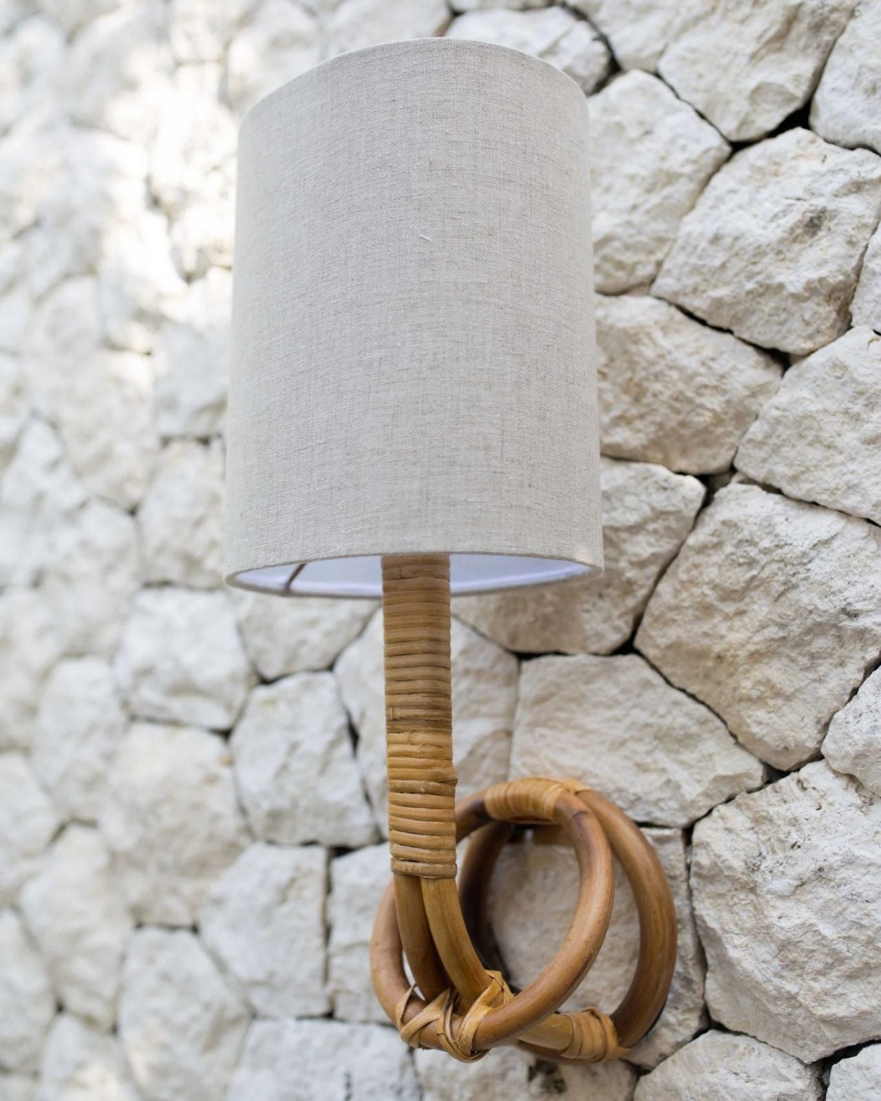 Organic Cane Wall Sconce With Linen Shade