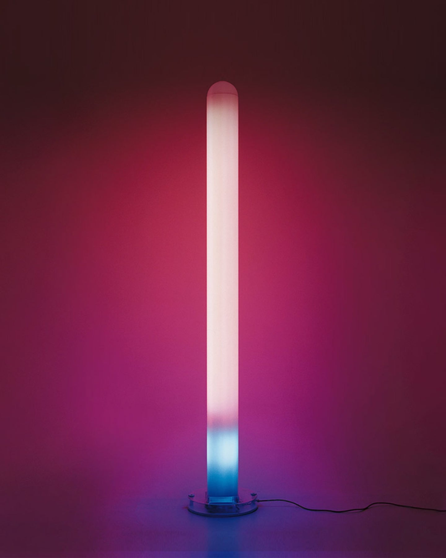 The Tall LED Floor Lamp | Metacolor is an iconic piece that introduces the expressive use of coloured light in contemporary lighting design. The Metacolor is a visual statement, its illuminated body naturally demanding attention and serving as the focal point of any room. A refined sculpted diffuser enhances a space's atmosphere through dynamic colour variation, allowing users to shift mood and tone with ease. By shaping ambience through colour, it delivers rich, immersive lighting experiences that redefine how environments feel and function.