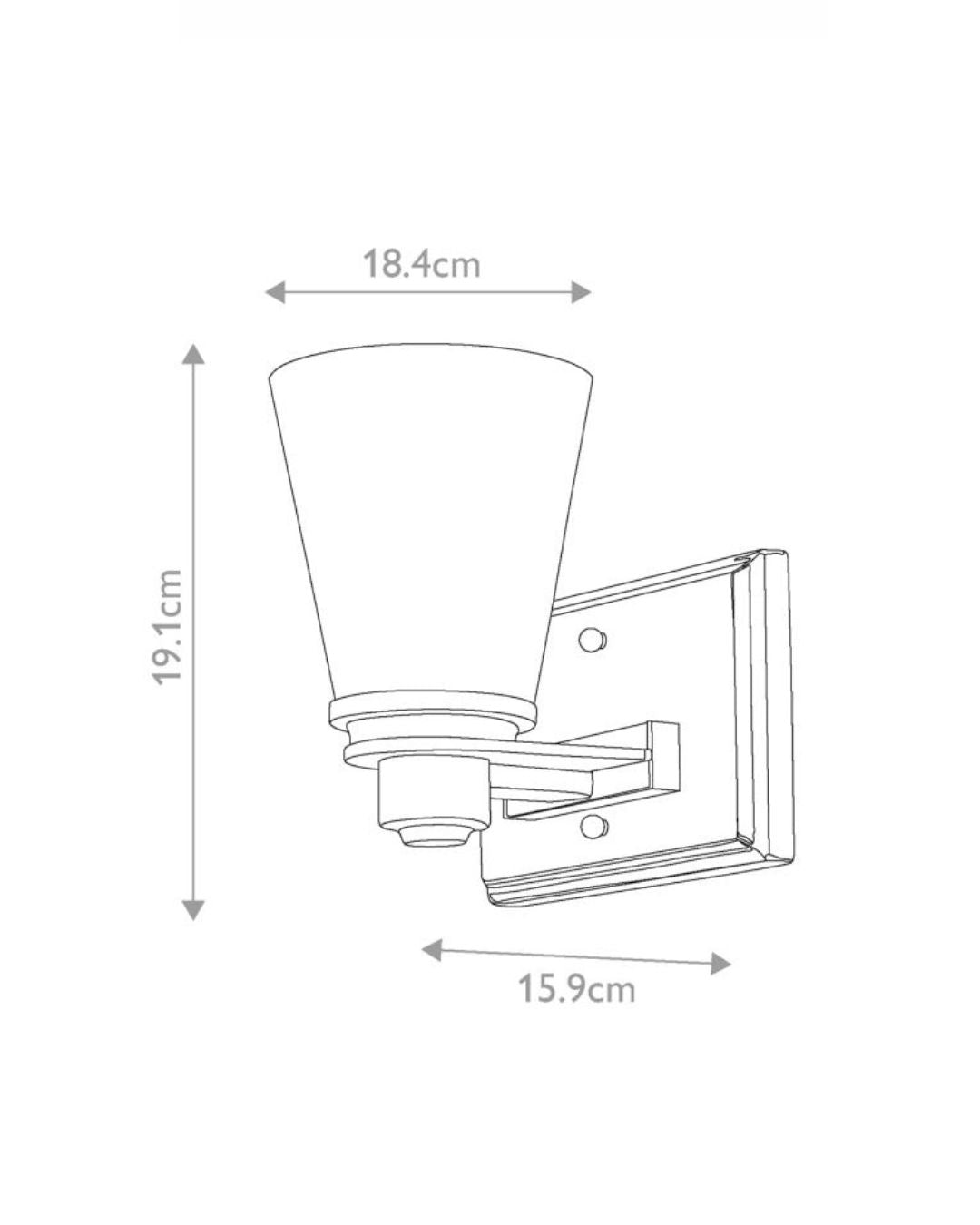 This Polished Chrome fitting's form is reflective of conventional lighting design. Characterised by its Opal Glass diffuser and sleek chrome accents this wall light enhances interior settings an is well suited with an IP44 rating for bathroom installation.
