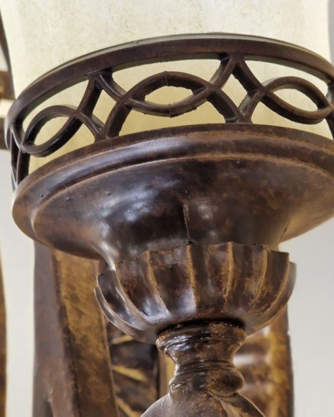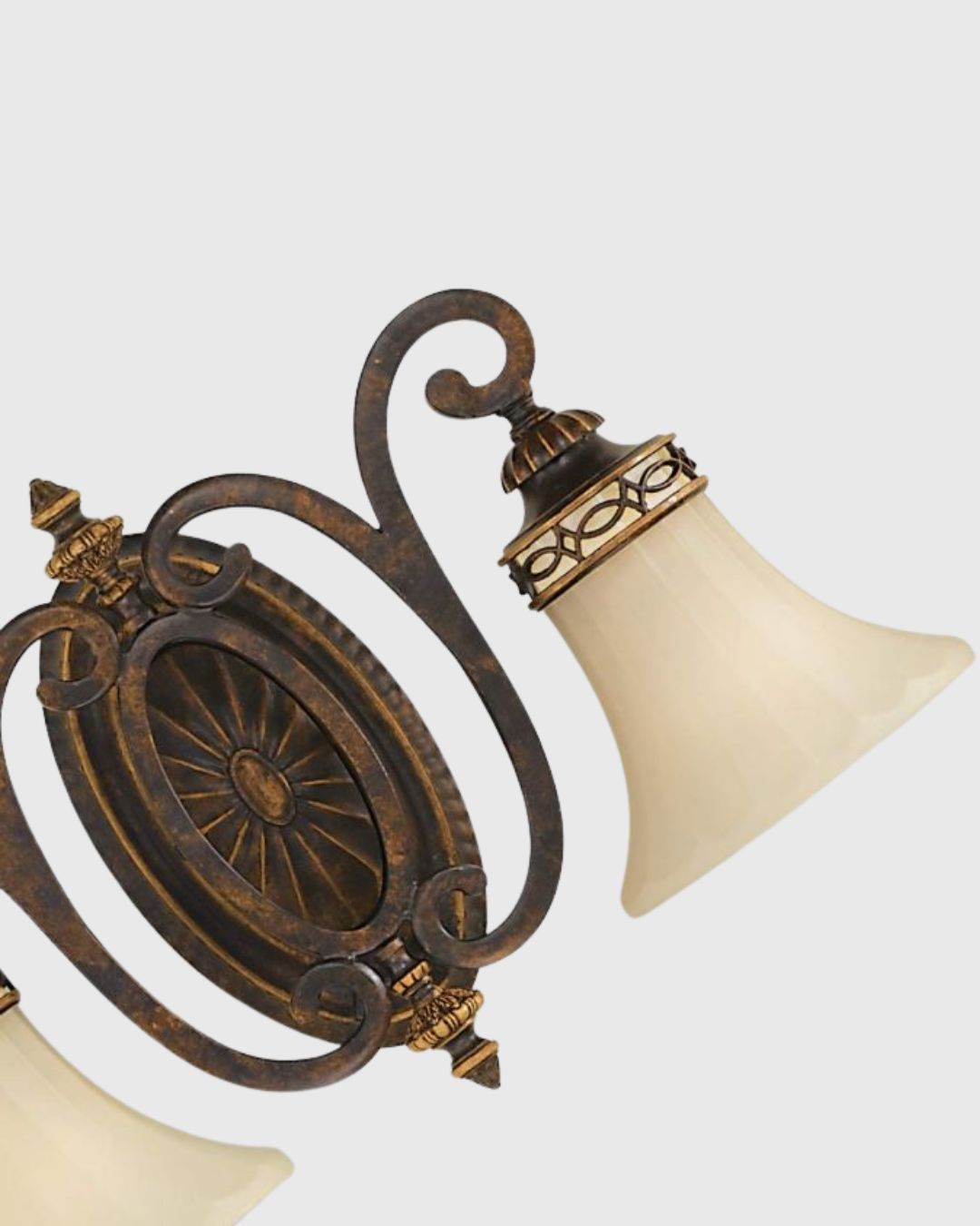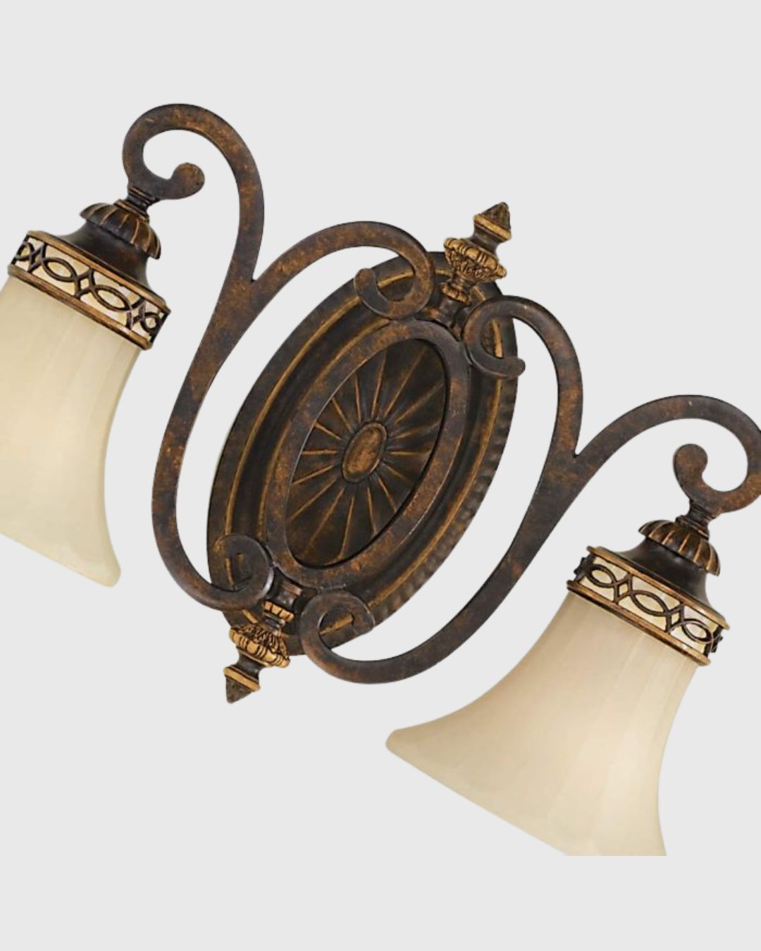 Handcrafted in the Hampshire countryside, the Edwardian Style Double Wall Light is part of a traditional styled iron collection with overlapping arches and fluted detailing, ideal for incorporating into a farmhouse or Mediterranean-styled space. Find these details in the pressed glass bowls and the die-cast aluminium fitters, with fretwork elements that draw on traditional architectural themes.