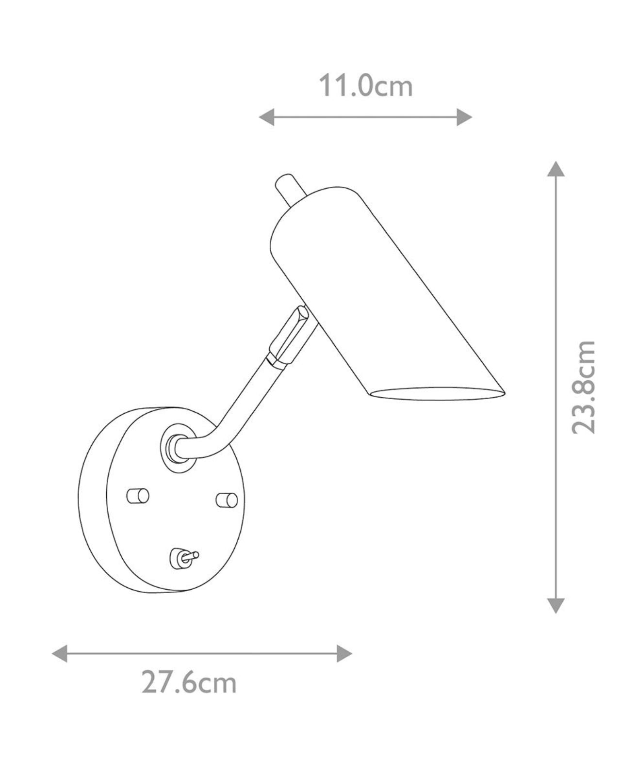 This wall light is a two-toned painted light with metal plated finish. With its switch and adjustable features, this wall light offers great functionality whilst still being a good looking piece of decor. This light brings a modern and smart style into your home.