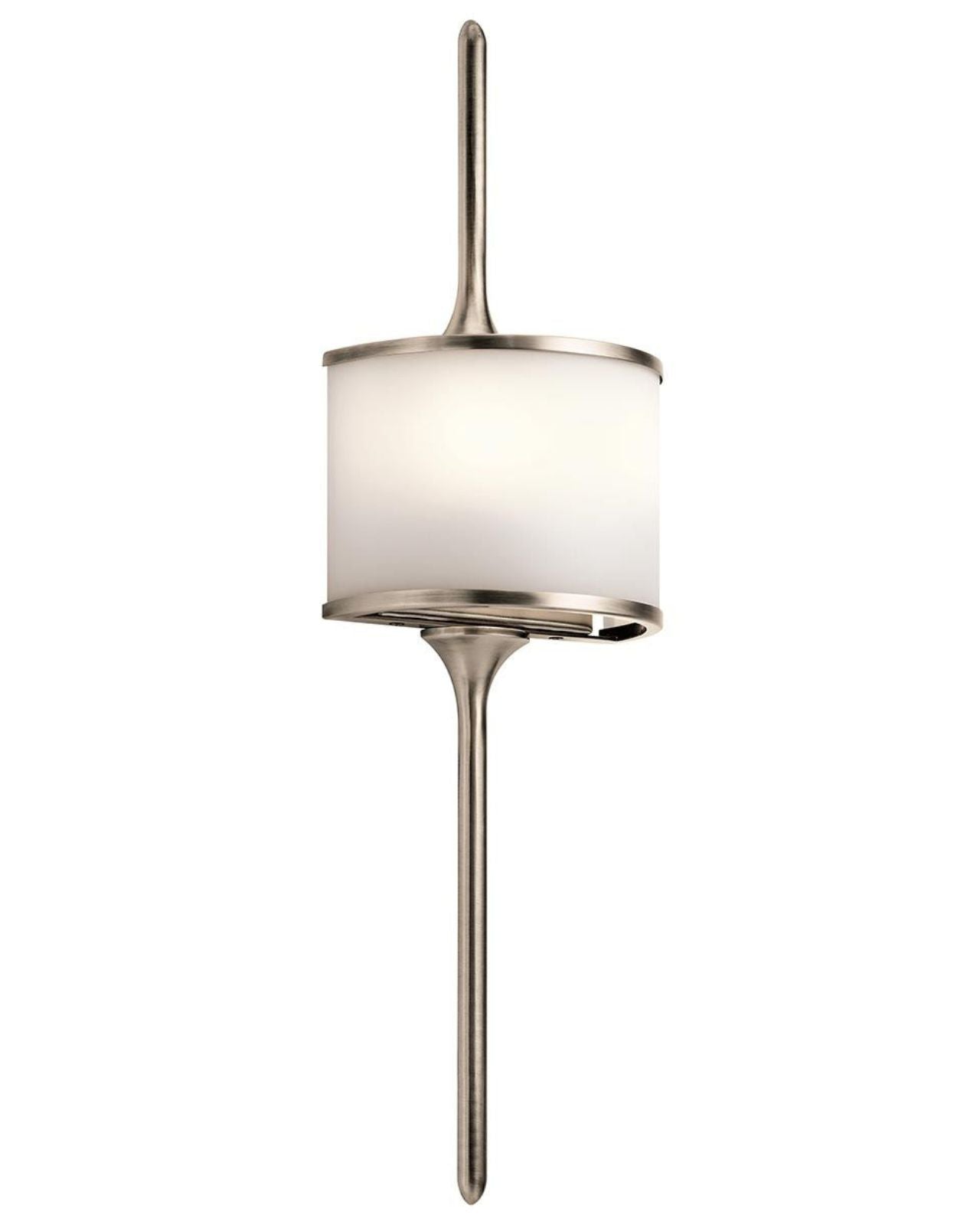This Mid-Century inspired wall light with fine delicate lines is a balanced symmetrical design available in four different finishes.  Suited for bathroom, bedroom, living room and hallways.