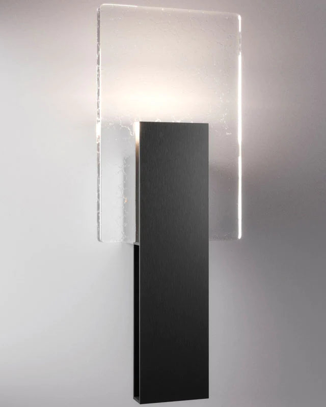 Designed by Bernhardt & Vella, an Italo-german female designer duo, this wall light is compact, light and refined and will elegantly embellish your home. The rectangular brushed metal plate which looks like a precious stone emits a magical light reflected by the angular polished crystal glass plate. The buit-in LED allows to get a pleasant soft light spreading through your living room, dining room or bedroom. The fixture is available in satin gold, satin rose gold and anthracite grey finishes.