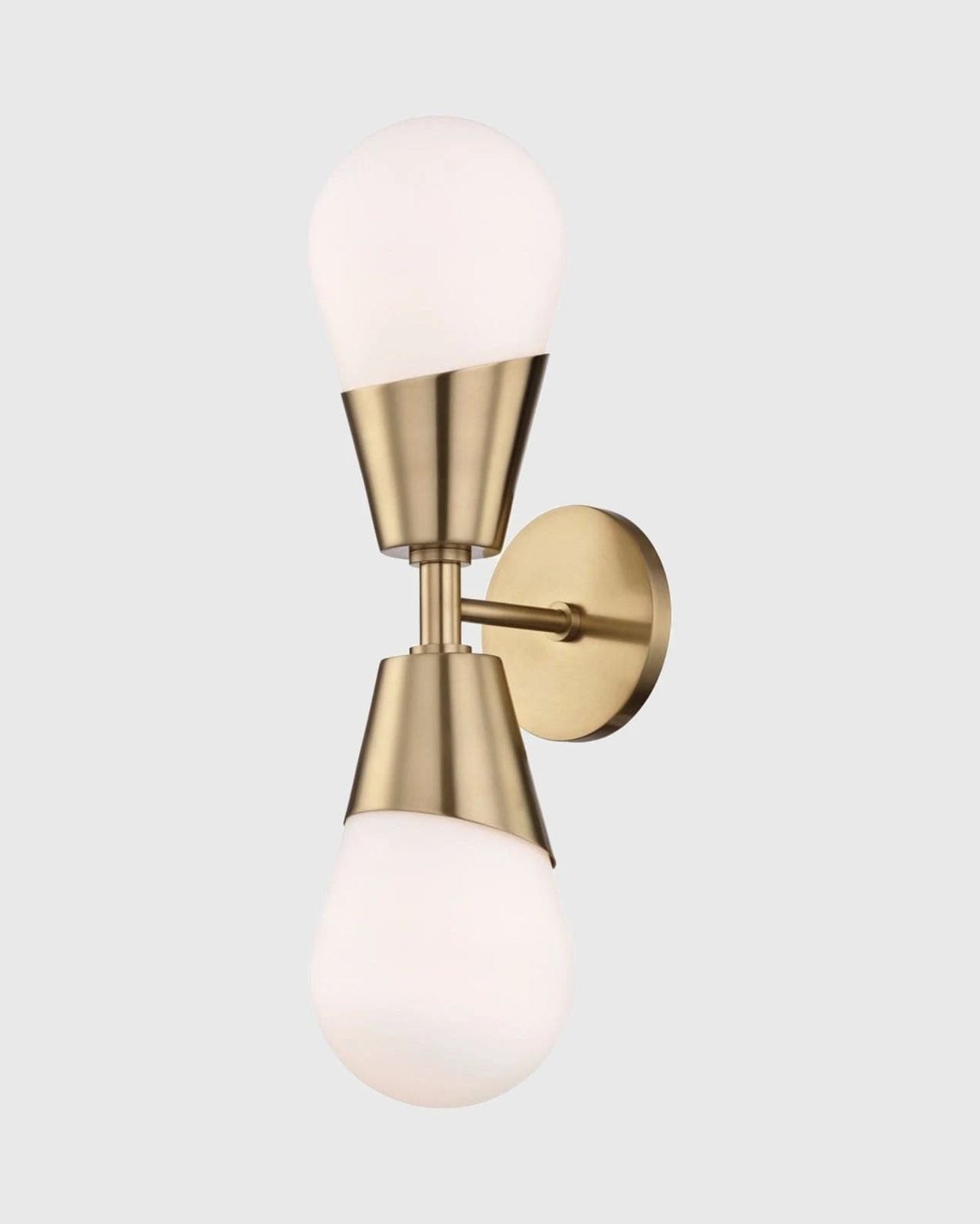 The stunning Double Minimalist Orb Wall Lights come in a variety of finishes; Aged Brass, Old Bronze and Polished Nickel. We recommend styling these as a pair on either side of your bathroom mirror as a Mid-Century Modern powder room vanity mirror.
