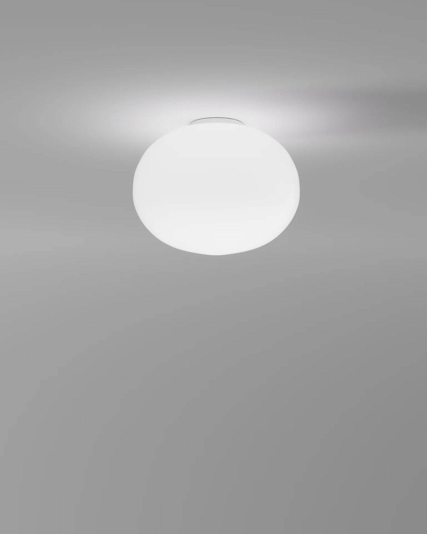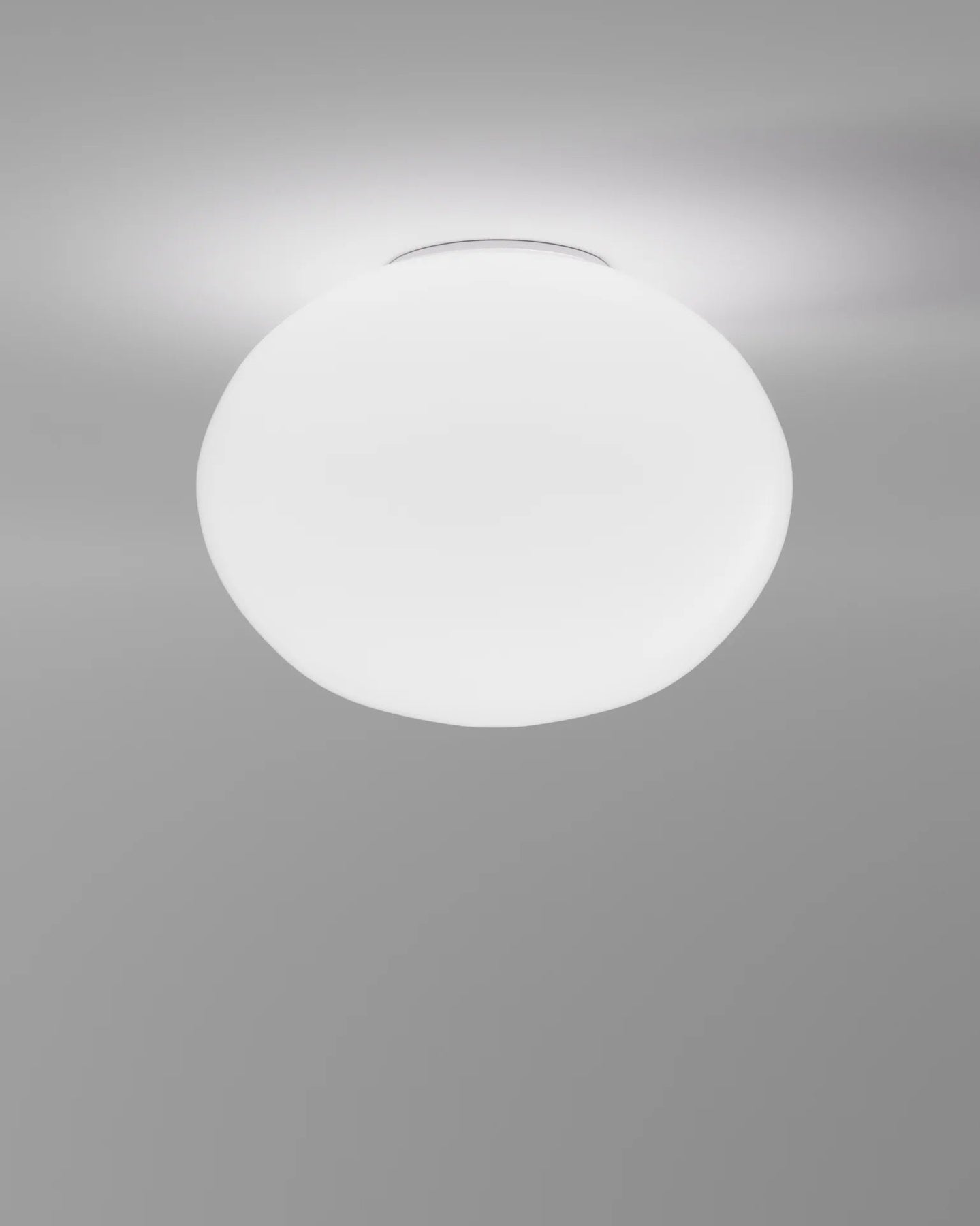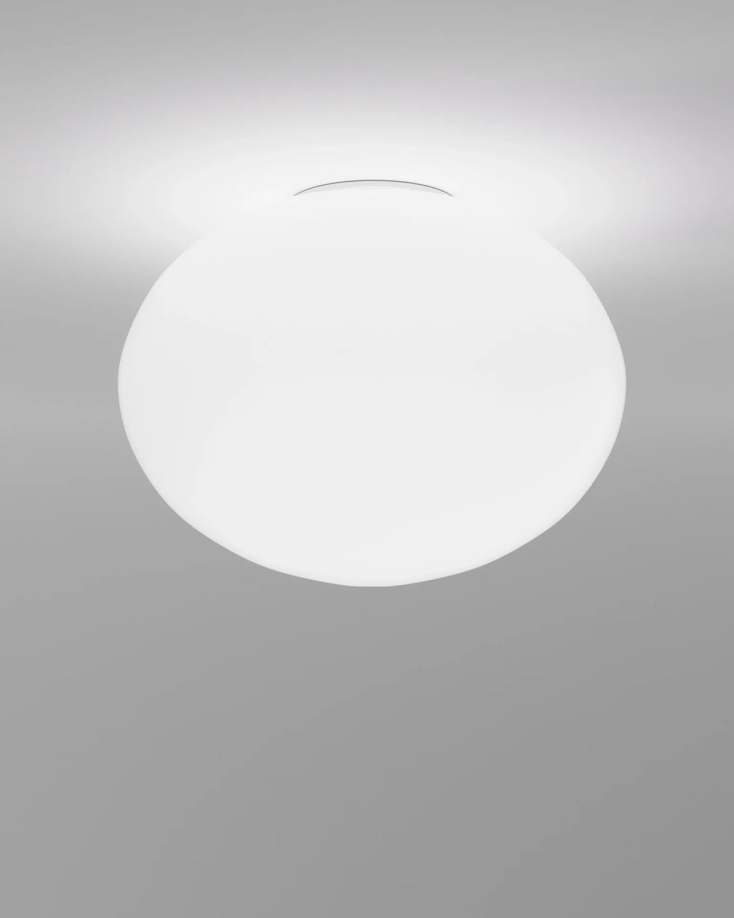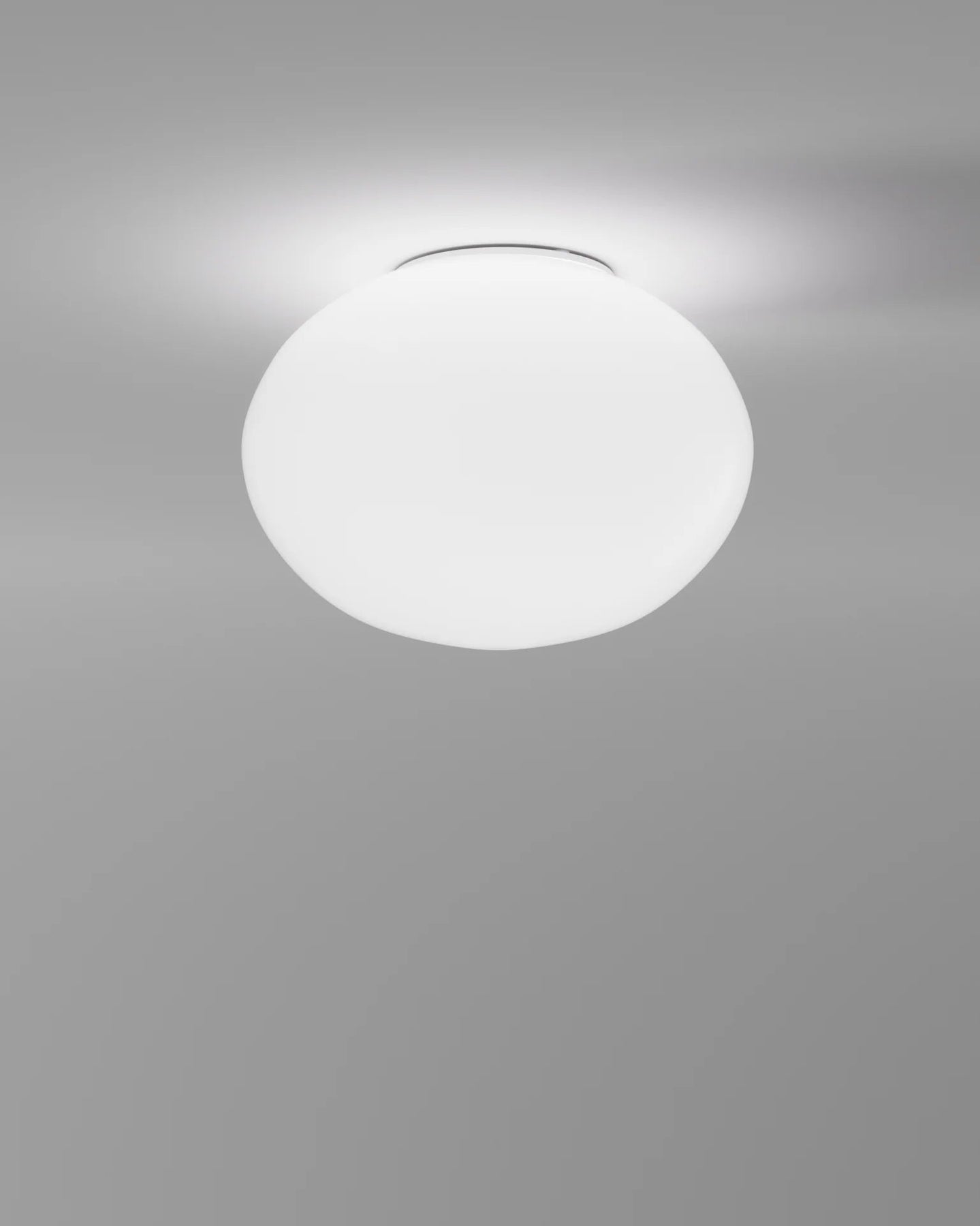 Round white light fixture on a gray background