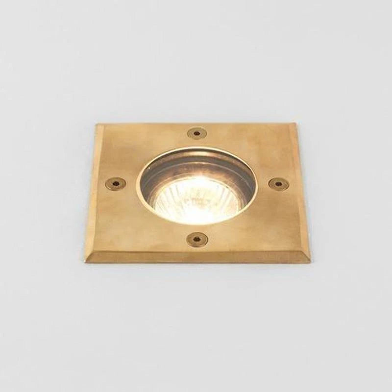 This square exterior floor-light makes a stunning addition at floor level to your outdoor space or decking that requires that extra special final touch. The light features a natural brass finish with toughened glass and a removable glare guard. This light is compatible with a 1 x 6w GU10 lamp which is not supplied. An energy-saving GU10 LED lamp is also compatible. This design has an IP65 rating, ensuring outdoor area suitability. The brass patina is caused through aging and can be polished back to restore the original finish if desired.