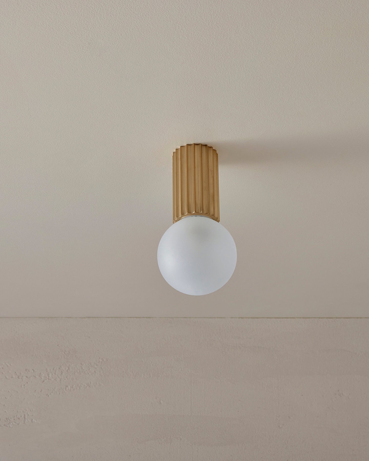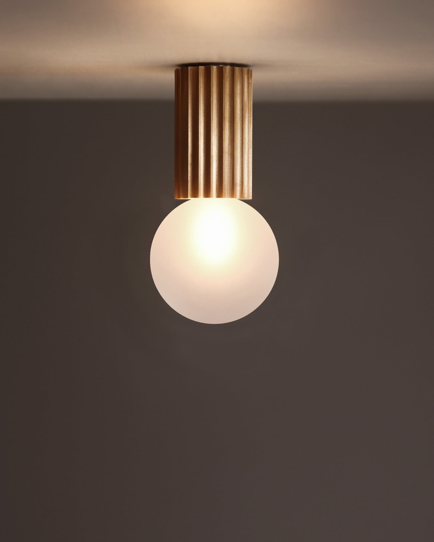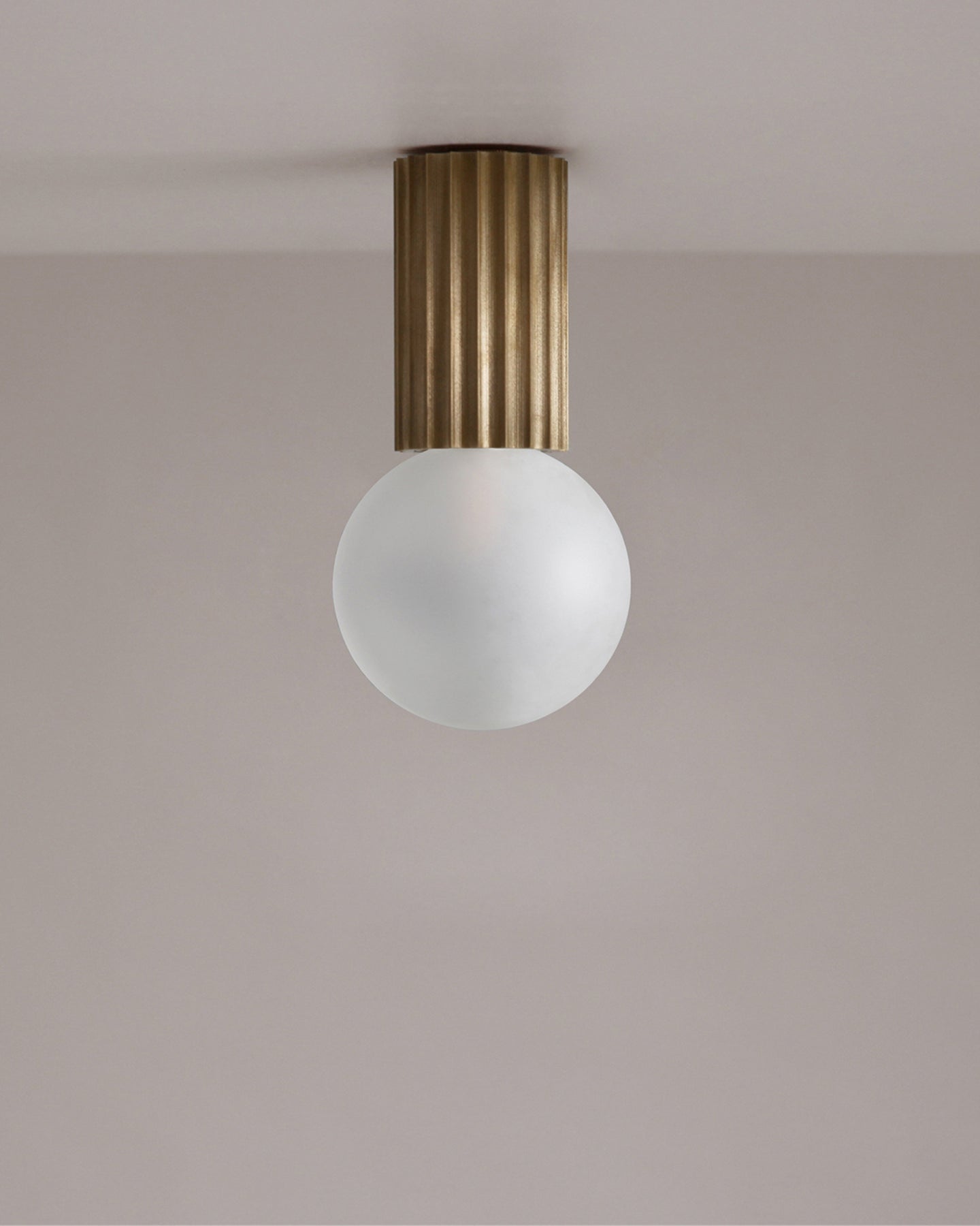 This classical fixture echoes the aesthetic of ancient Greek architectural forms. Its solid brass base complements a frosted LED globe which provides gentle downwards illumination.