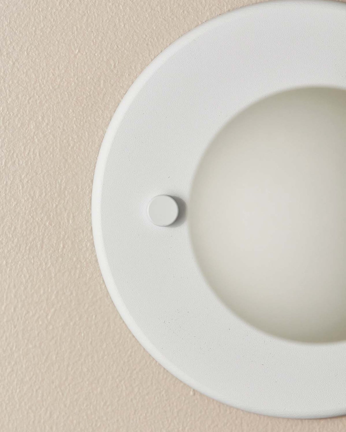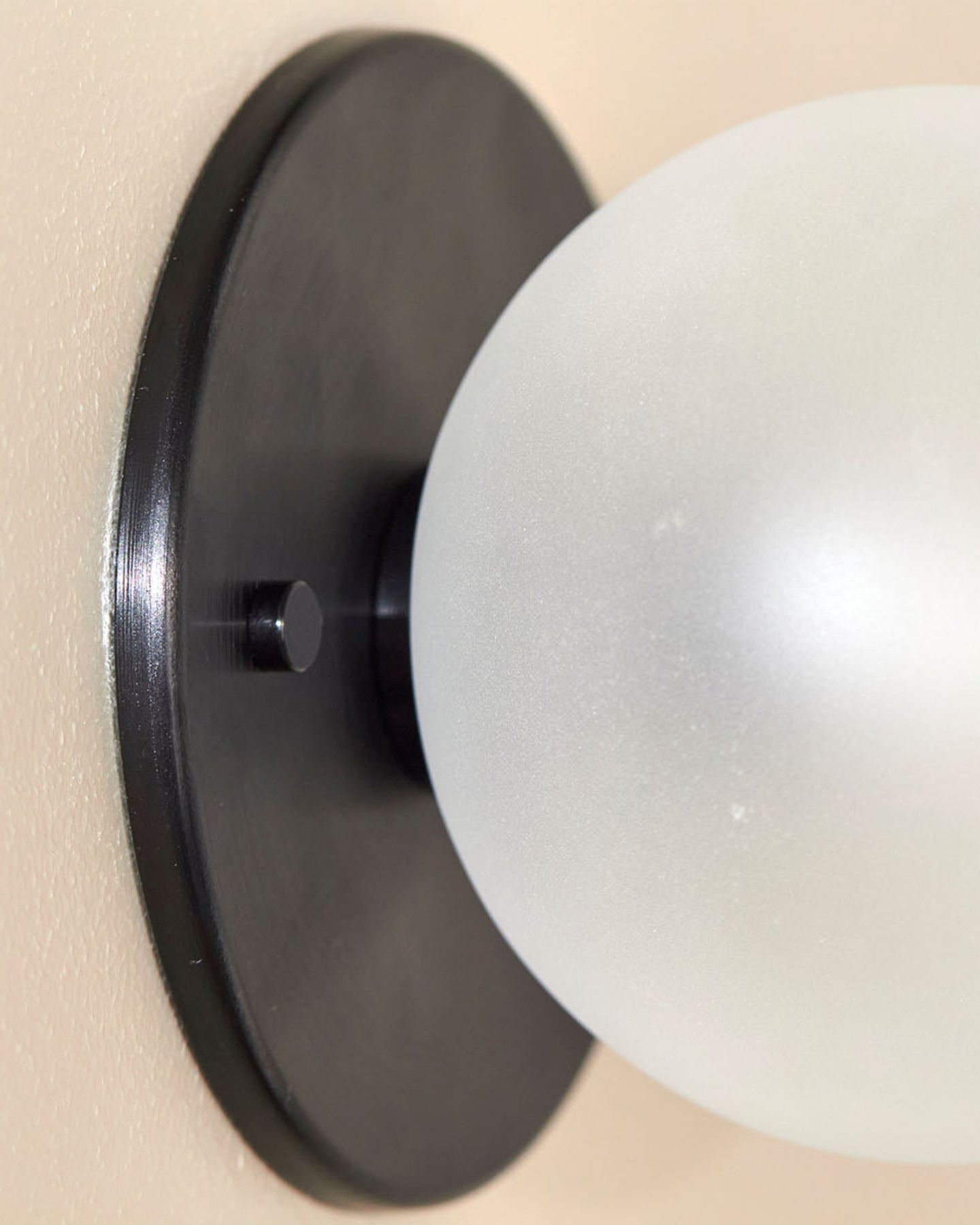 Enhancing any bedroom, kitchen, living room or entrance hall, this spherical wall light is made of glass with three elegant finishes, white frosted, clear frosted or opal, and of a simple metal thin circular mount available in brass, brushed black or satin white. Minimalist and timeless, this small, medium or large fixture will make a statement in any modern or contemporary interior bringing a glare-free cosy light in the surroundings.