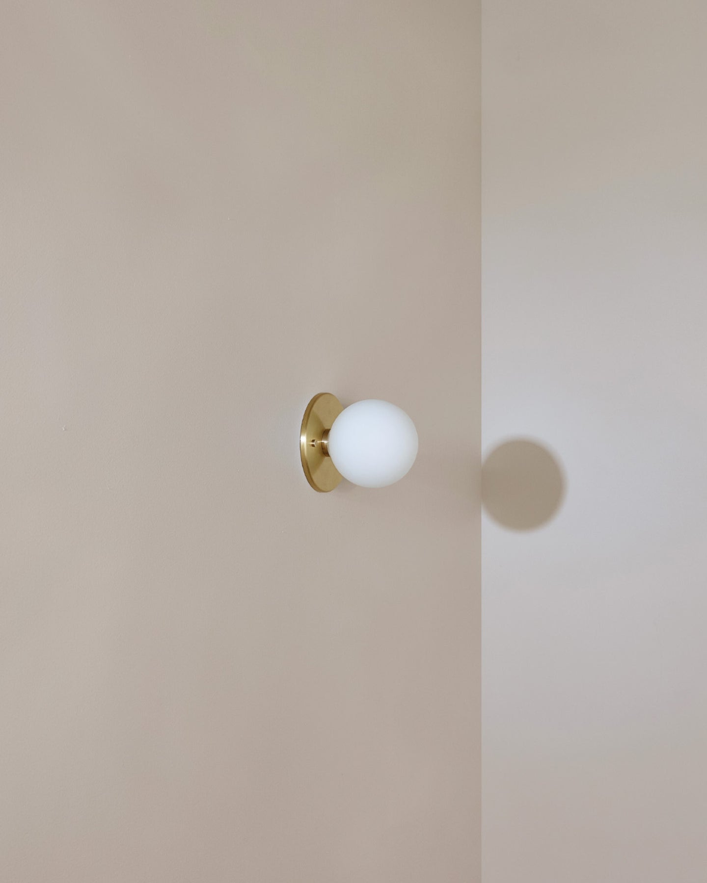 Minimalist Metal and Glass Orb Wall Light - Small / Brass / Clear Frosted