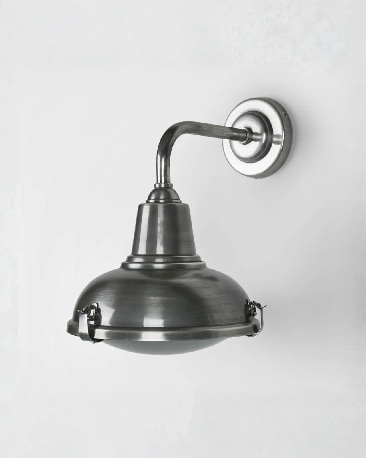 With its simple yet elegant design and premium materials, this wall light is not just a beautiful addition to patios and entrance ways, it's a functional statement piece that promises years of aesthetic and beautiful illumination. Crafted from brass and IP54 rated, this fixture will easily withstand harsh weather while providing a soft and even light thanks to the frosted glass fixed on the bold structure. It is available in antique brass, antique silver or black finish to suit any outdoor style from classical to contemporary.