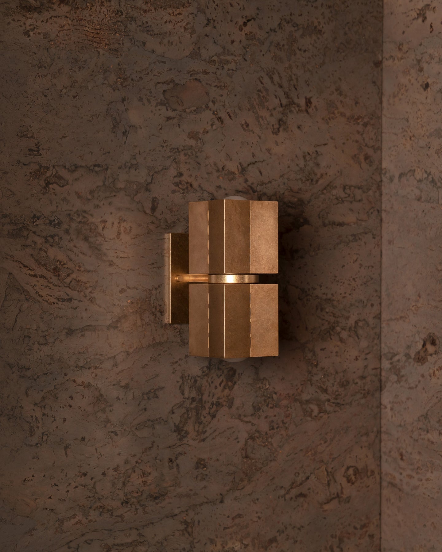 Brass wall light detail against a textured wall background