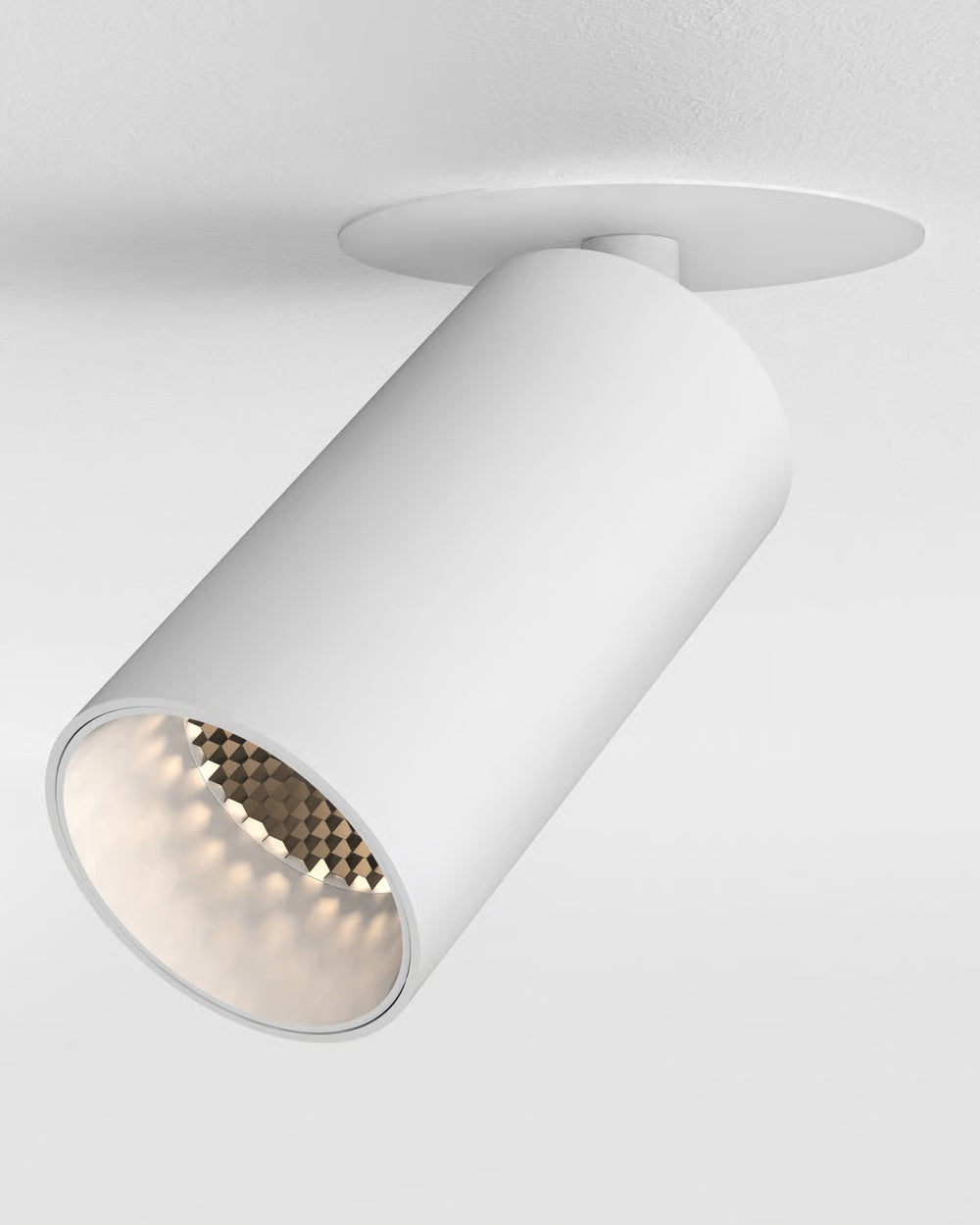 This recessed ceiling light combines functional lighting with minimal and clean lines design and should be installed on plaster board only. Available in matt black or matt white finish, this dimmable spotlight made from aluminium features an integrated LED and is easily rotatable for a perfect lighting setup. It is ideal to lighten up your kitchen, hallway or bedroom.