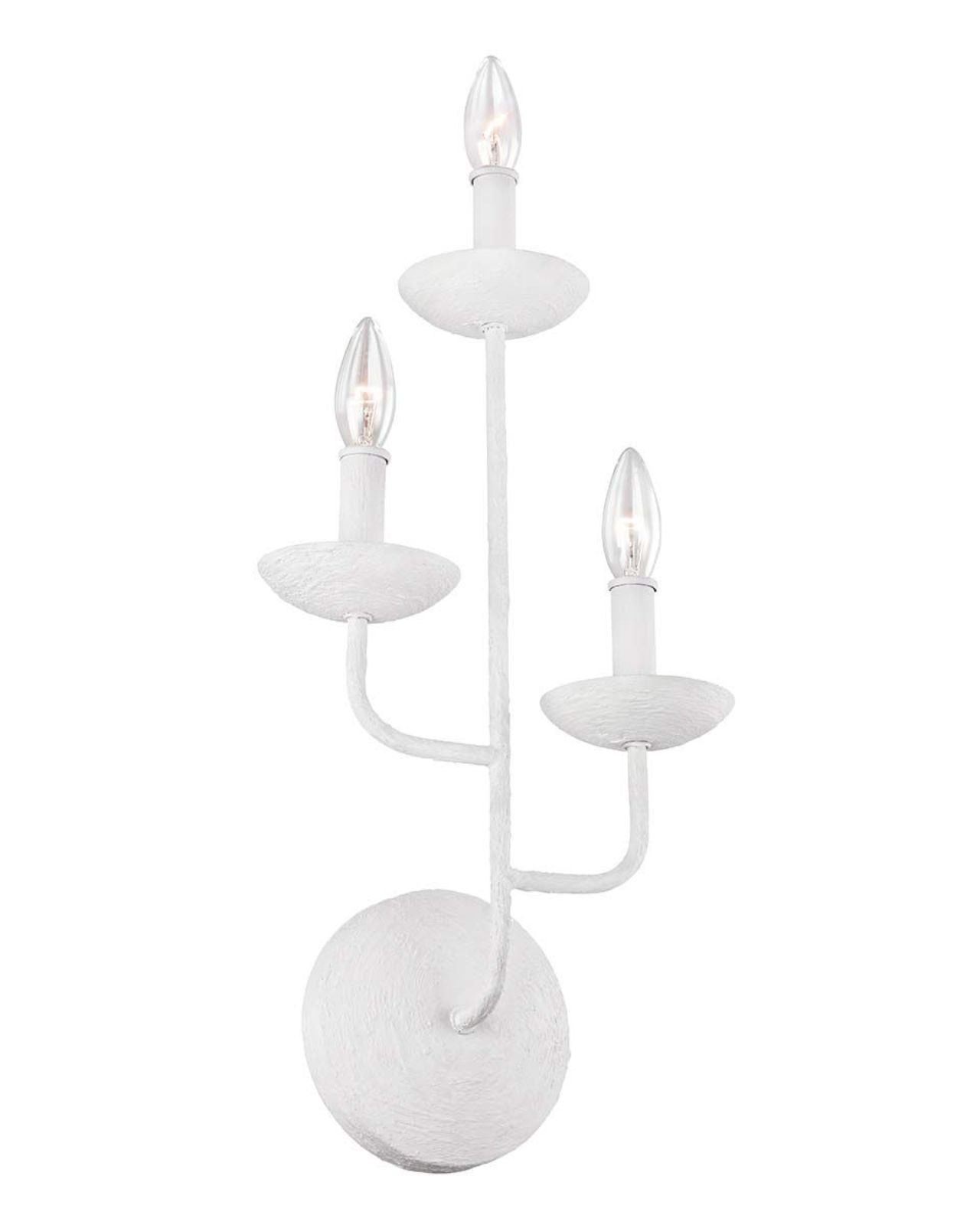 The Triple Arm Textured Wall Light is a timeless fitting, inspired by both Traditional and Contemporary design elements. Featuring a steel frame with a heavy textured plaster finish, this is an interesting fixture that draws from popular Coastal design. Pair with Candle-shaped filament globes to embrace the Traditional elements of this light, or add shades to the lamp holders to focus attention on the curved lines of the design.
