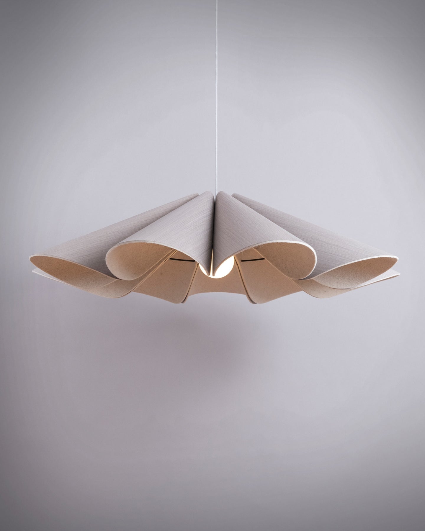This flexible wood veneer pendant lends an aesthetically pleasing design crafted with superior quality. Each pendant is available in multiple finishes and sizes and is a distinct piece with its own captivating character; its beauty is matched by its functionality, practicality, and versatility. Ideal for living areas, hallways and bedrooms as an individual fixture or in a group of various sizes in expansive areas.
