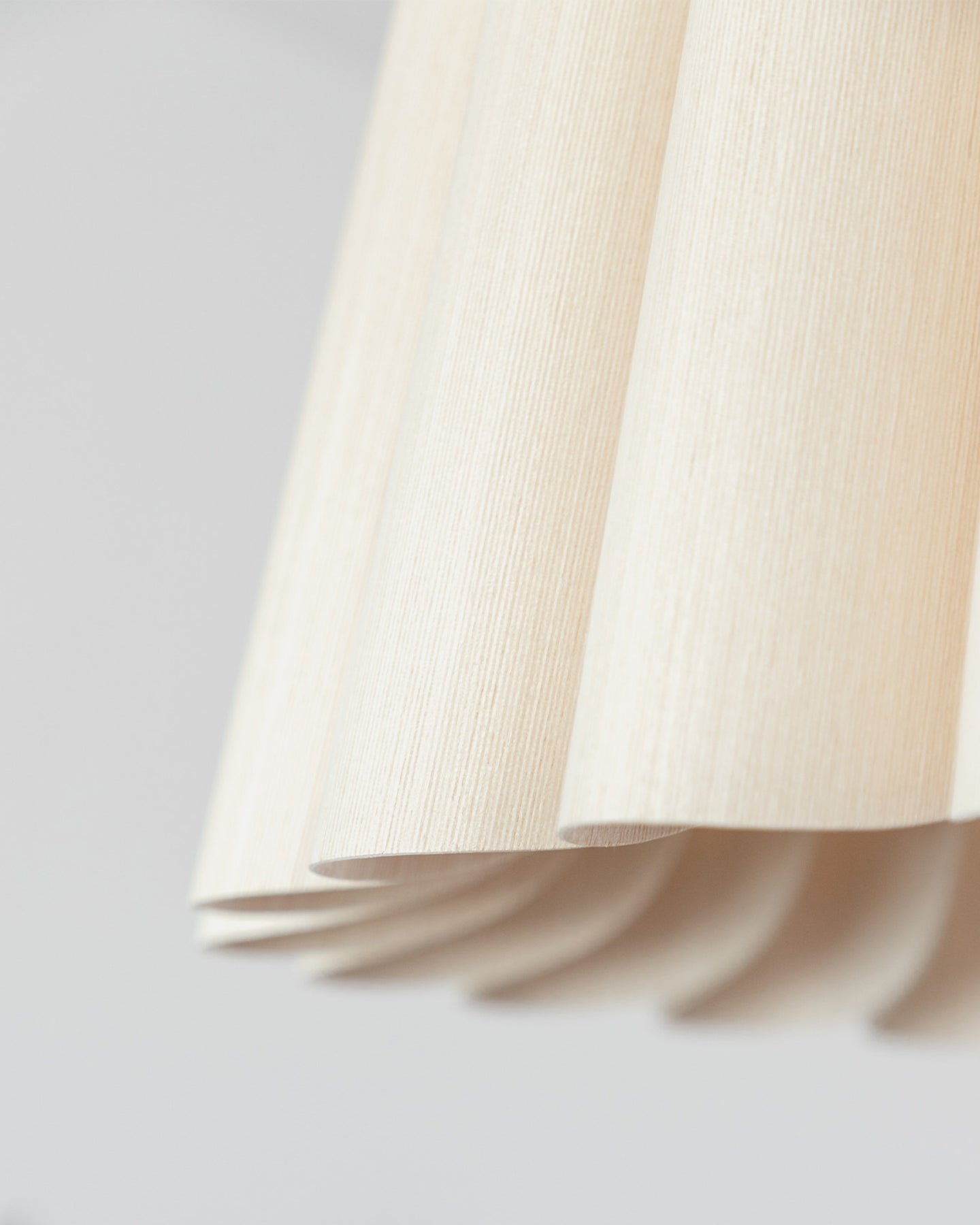 Close-up of beige pendant with a subtle pattern on a light gray background