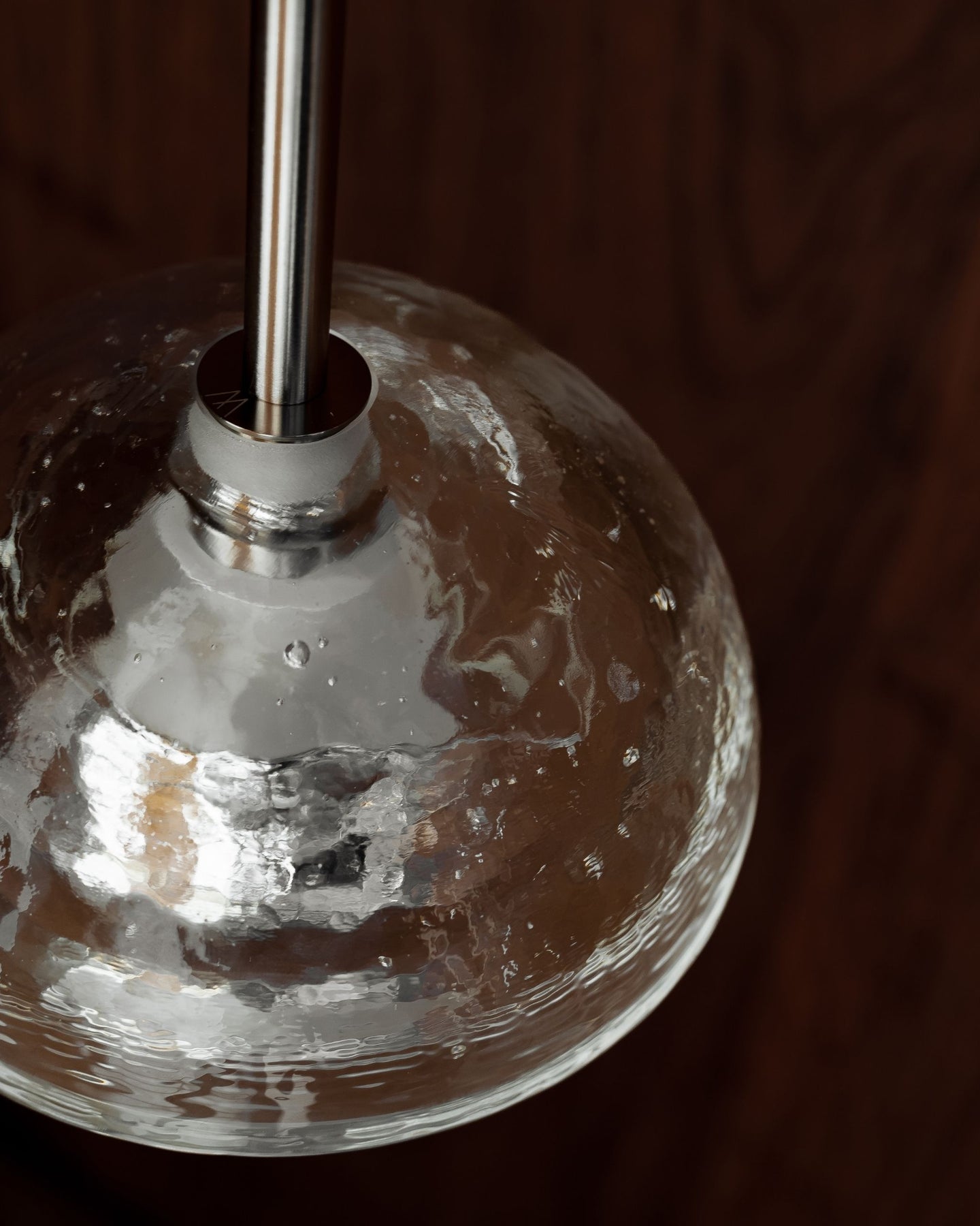 Designed and hand-cast in the prestigious Jam Factory, Adelaide, the Cast Glass Rod Pendant features a solid rod suspension in four different finishes. With each fitting hand-poured, every piece has a unique pattern of bubbles and marks that bear resemblance to water, creating interesting shadows and reflections when the light is illuminated. With an IP44 rating, install these pendants in bathrooms for additional lighting or in bedrooms to replace the standard floor lamp.
