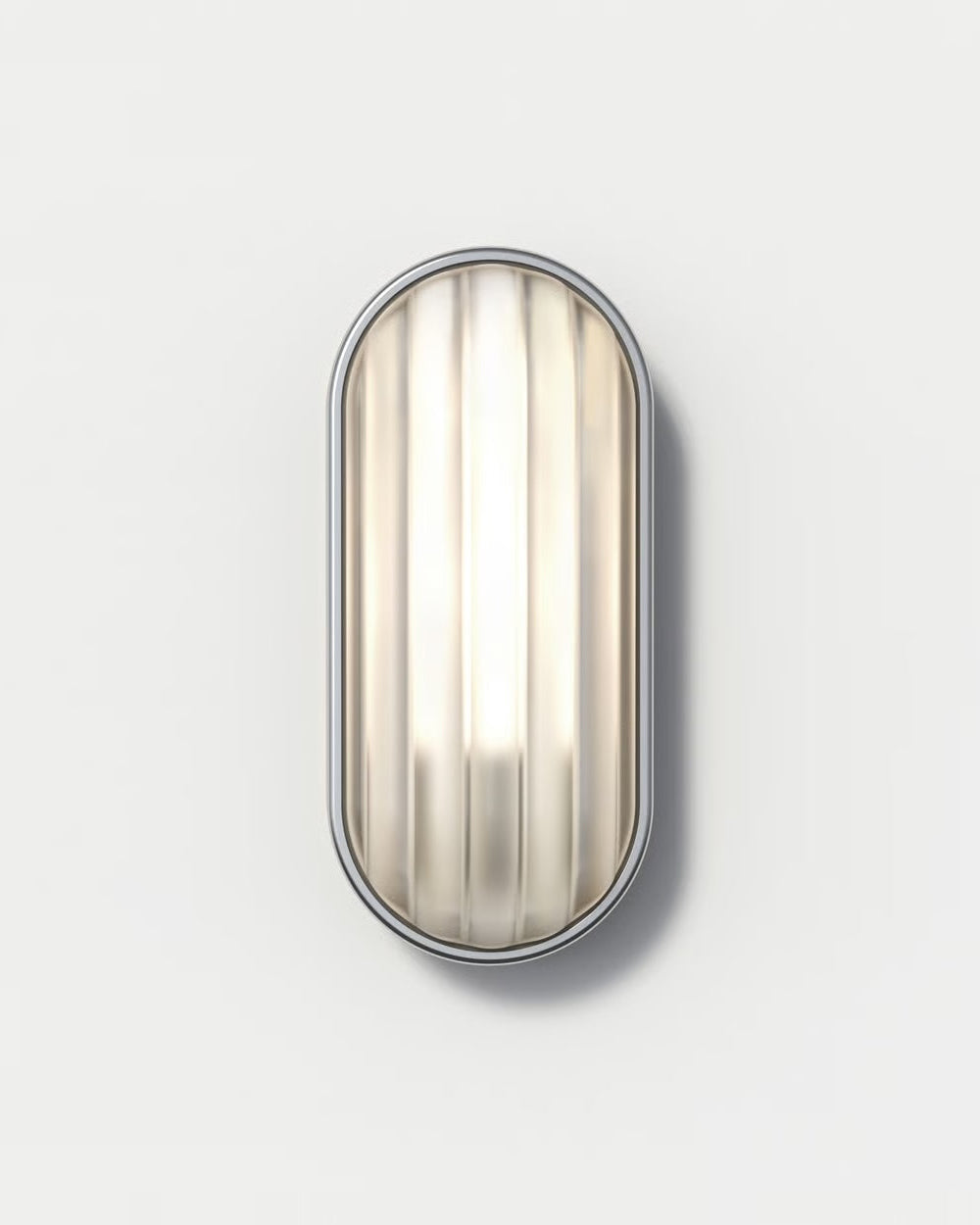 Coastal Grade Oval Wide-Ribbed Glass Bulkhead Light - Brushed Stainless Steel