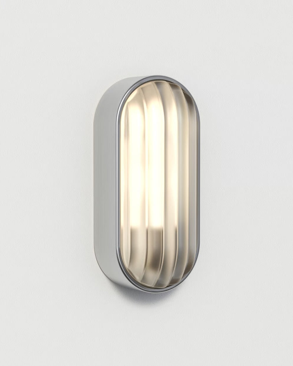 This Coastal Grade Oval Wide-Ribbed Glass Light offers a refined reinterpretation of the classic bulkhead wall-light, combining vintage character with robust, modern build quality. It subtly radiates warmth and sophistication for exterior spaces.