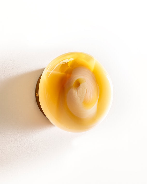 Crafted in Melbourne, Australia from hand-blown glass, the Colourscape Wall Light in Sunshine is inspired by the ever-changing hues of Australian skies. Crafted from coloured glass, this wall light's vibrant colour will never fade like painted alternatives. Each light is a unique piece of art, a testament to the skilled artistry that goes into its creation. Choose from a variety of finishes and sizes to best suit any area.