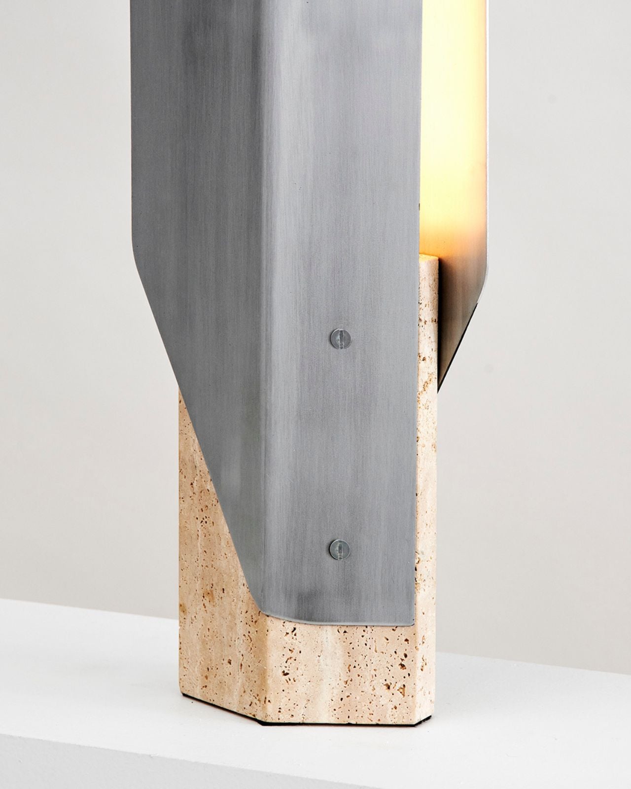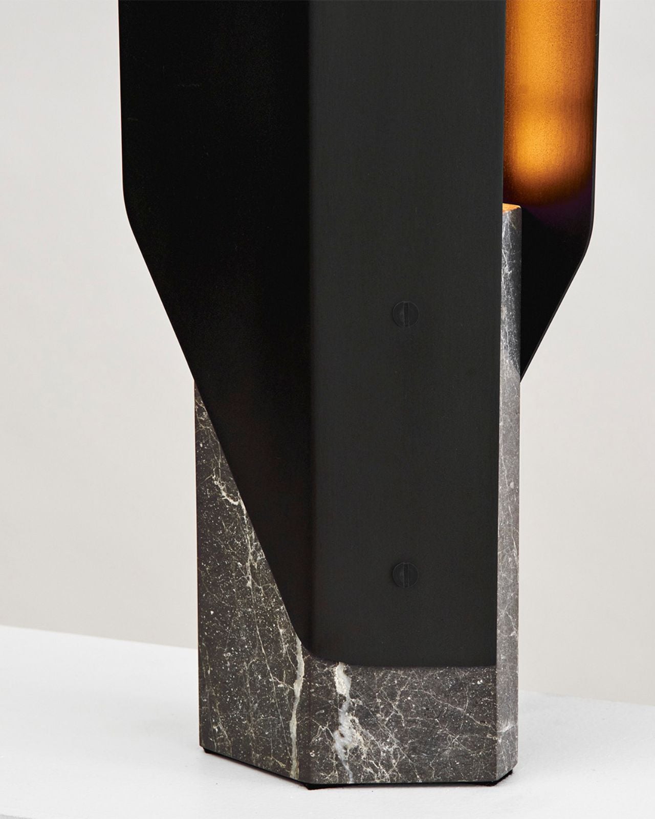 Inspired by the Cyberpunk aesthetic of 1982's Blade Runner, this sleek table lamp features angular design elements combined with raw materials. The intertwined shade reflects a warm integrated LED, creating a soft indirect light complimented by a marble base, available in three finishes. Choose from an Aged Bronze or Brass shade for a timeless addition, or the Deep Sea or Brushed Aluminium shade for a more contemporary look.