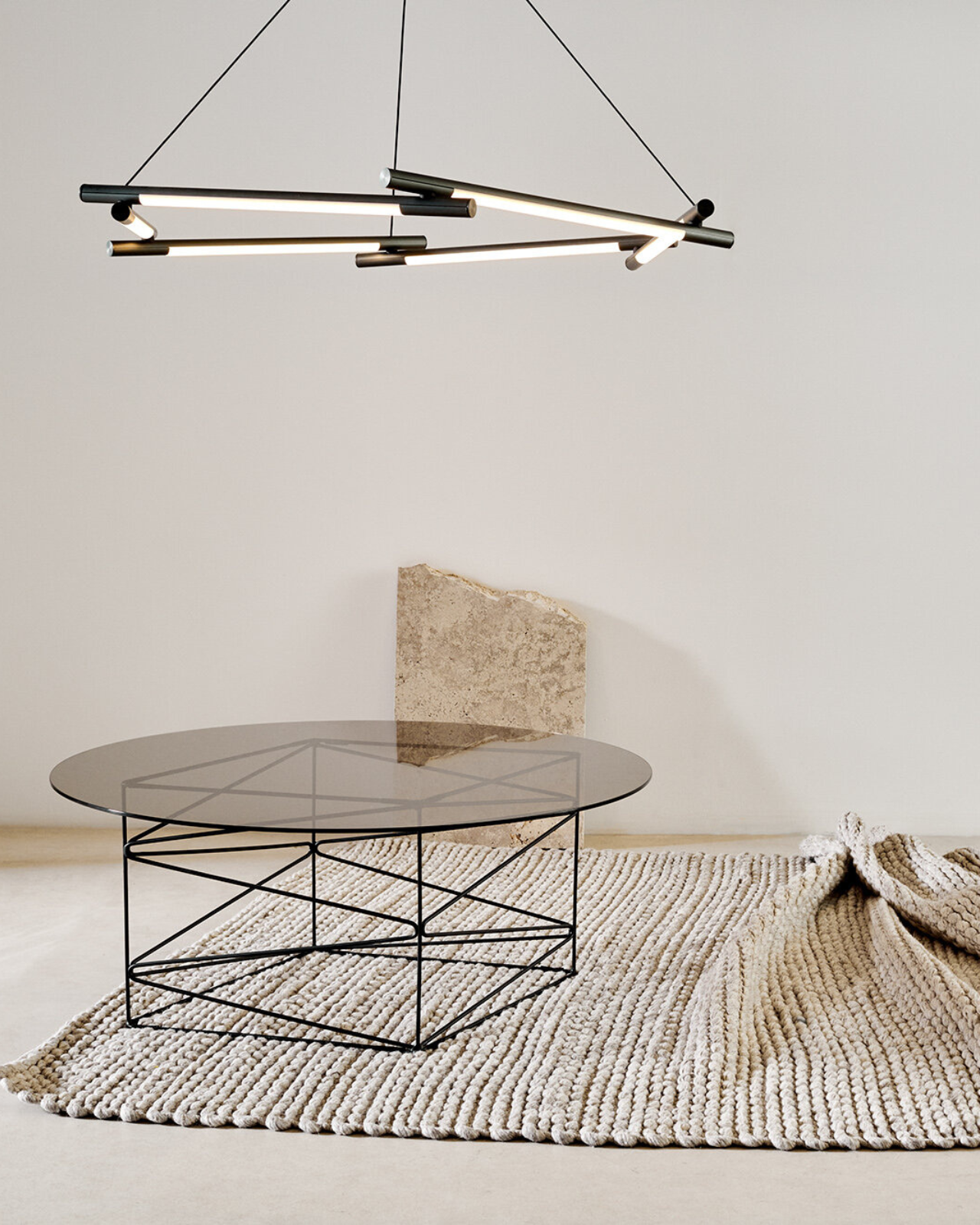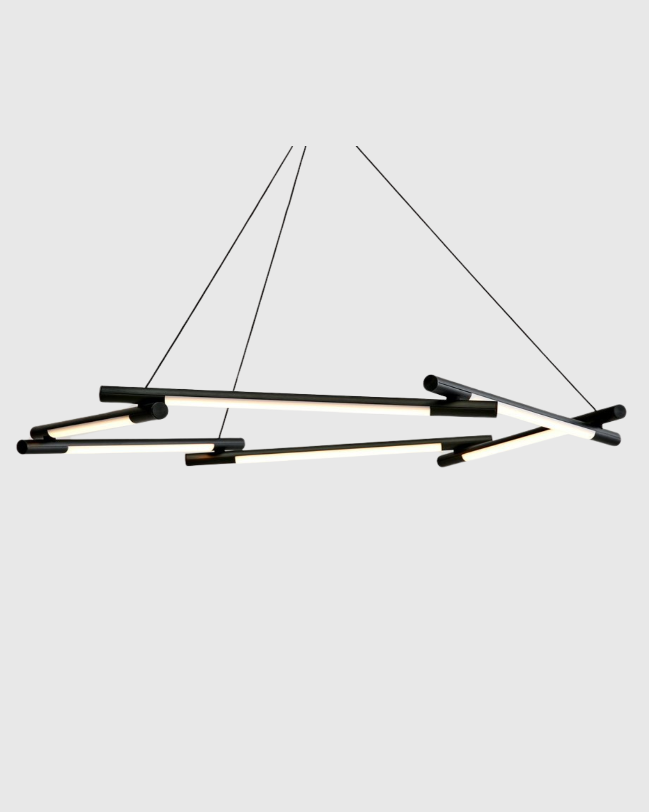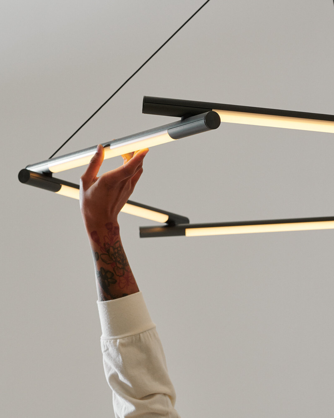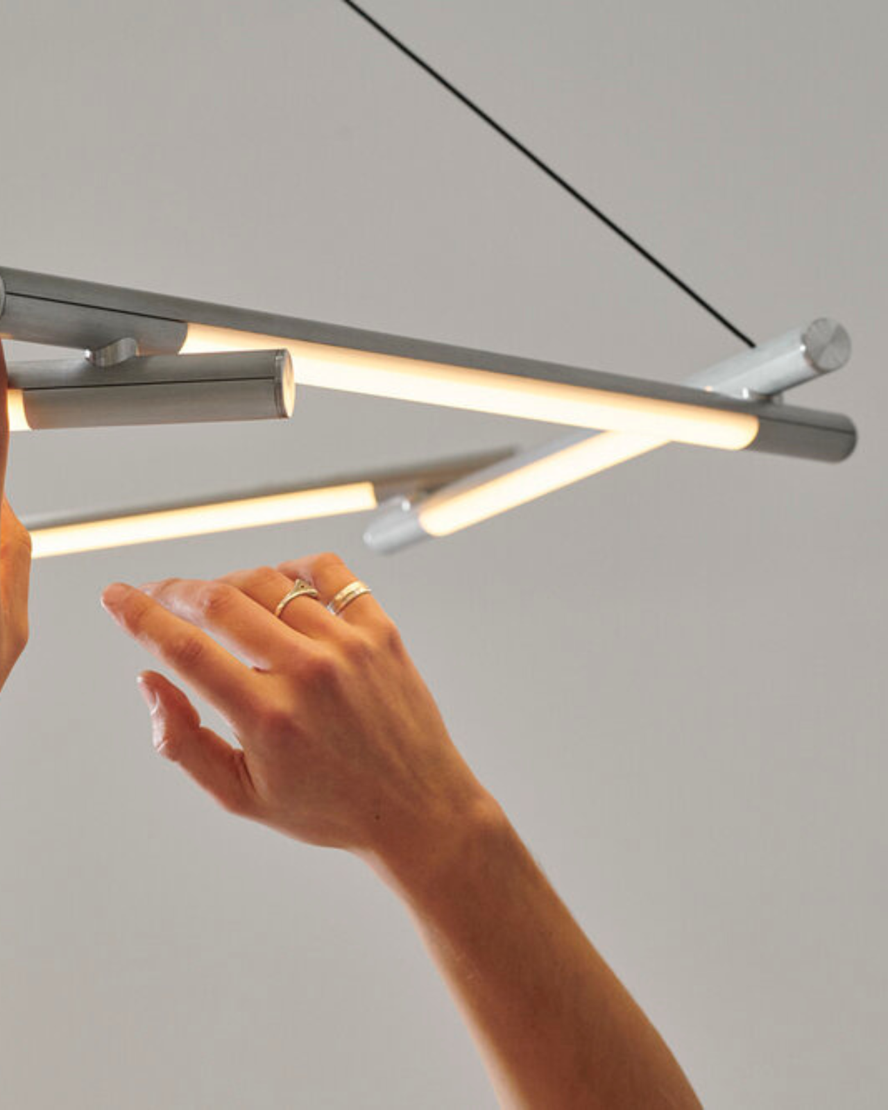 The Formation Chandelier is a contemporary fitting that reimagines the classic luxury chandelier. Crafted from interlocking extruded aluminium profiles, this striking piece features an angular, industrial design that serves as a bold focal point. Available in seven sophisticated finishes, with additional custom options, it seamlessly blends versatility with distinctive character. Ideal for illuminating expansive living rooms, stairwells or foyers.